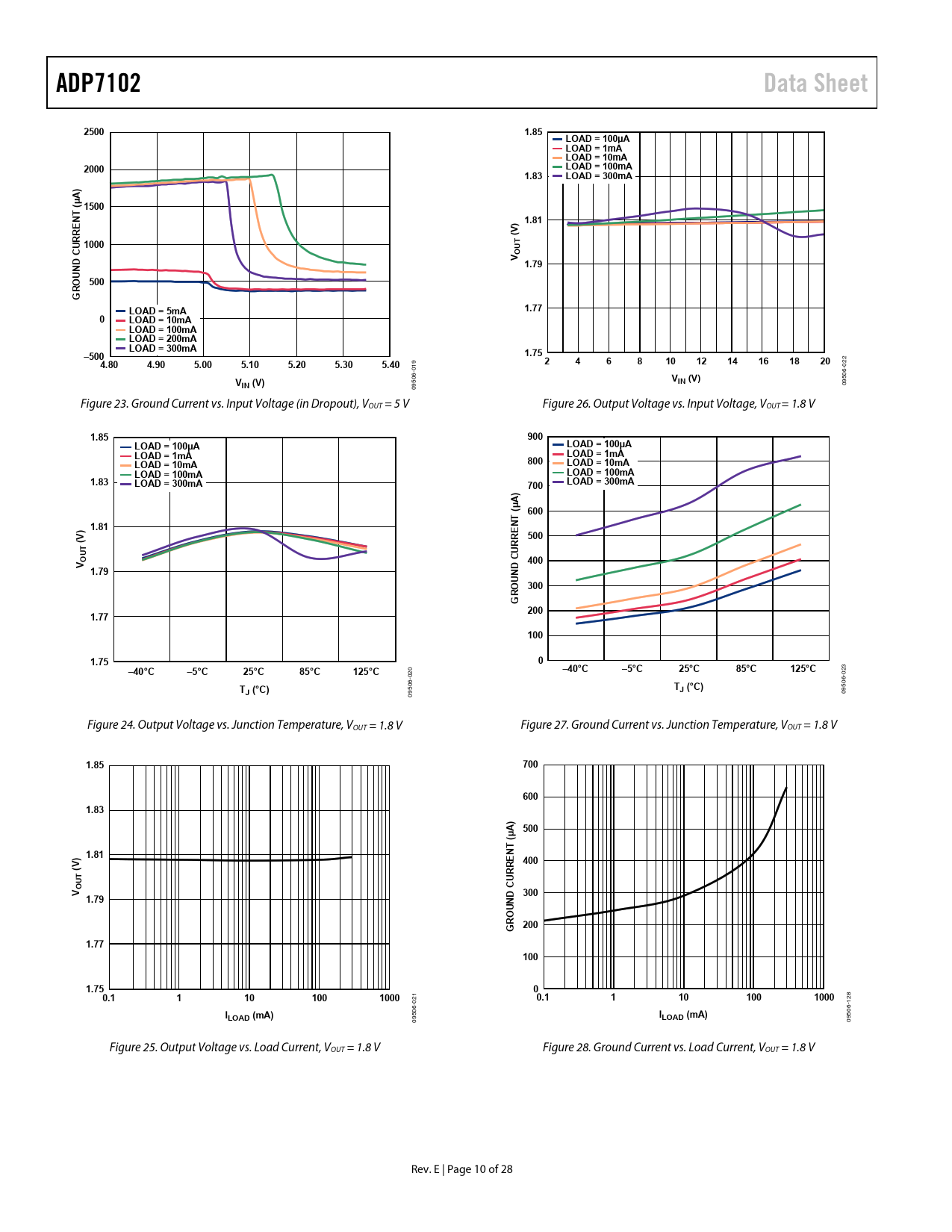| Páginas / Página | 28 / 10 — ADP7102. Data Sheet. 2500. 1.85. LOAD = 100µA. LOAD = 1mA. LOAD = 10mA. … |
