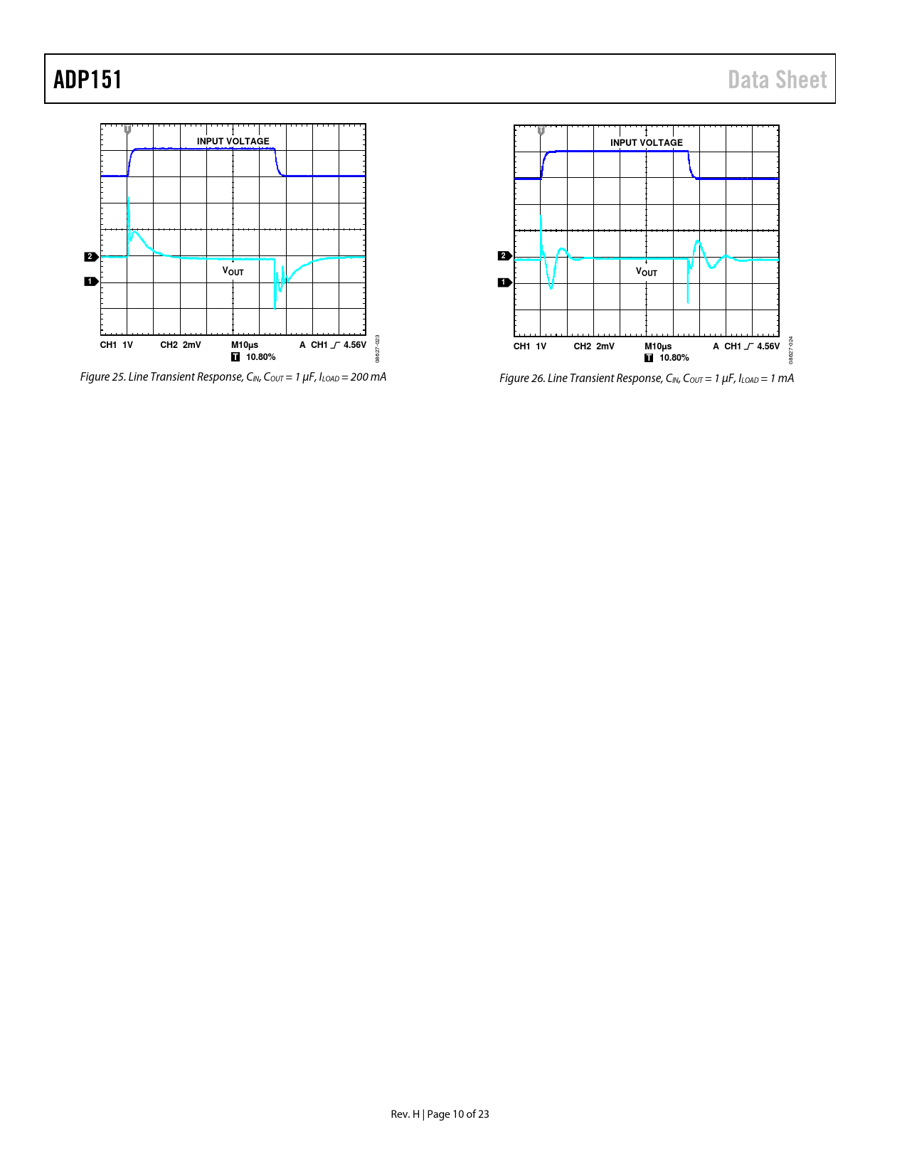 ADP151. Data Sheet. INPUT VOLTAGE. VOUT. CH1 1V. CH2 2mV. M10µs. A CH1 4.56V. T 10.80%