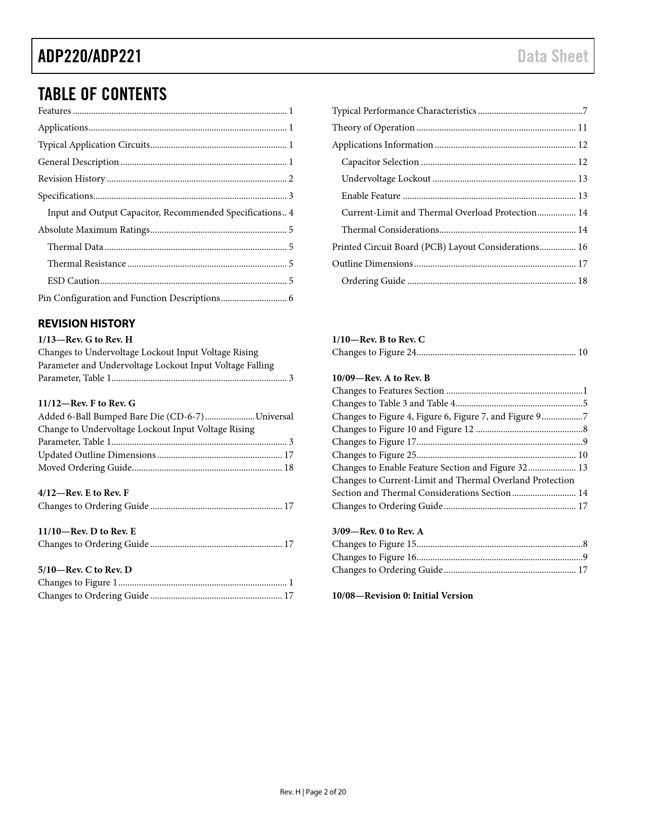 ADP220/ADP221 Data Sheet TABLE OF CONTENTS REVISION HISTORY 1/13—Rev G to Rev H 1/10—Rev B to Rev C
