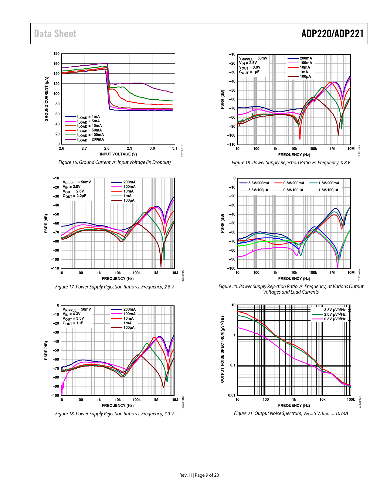 Data Sheet. ADP220/ADP221. 180. –10. VRIPPLE = 50mV. 200mA. 160. –20. VIN = 2.5V. 100mA. VOUT = 0.8V. 10mA. 1mA. 140. –30. OUT = 1µF. 100µA. A) µ. –40. 120