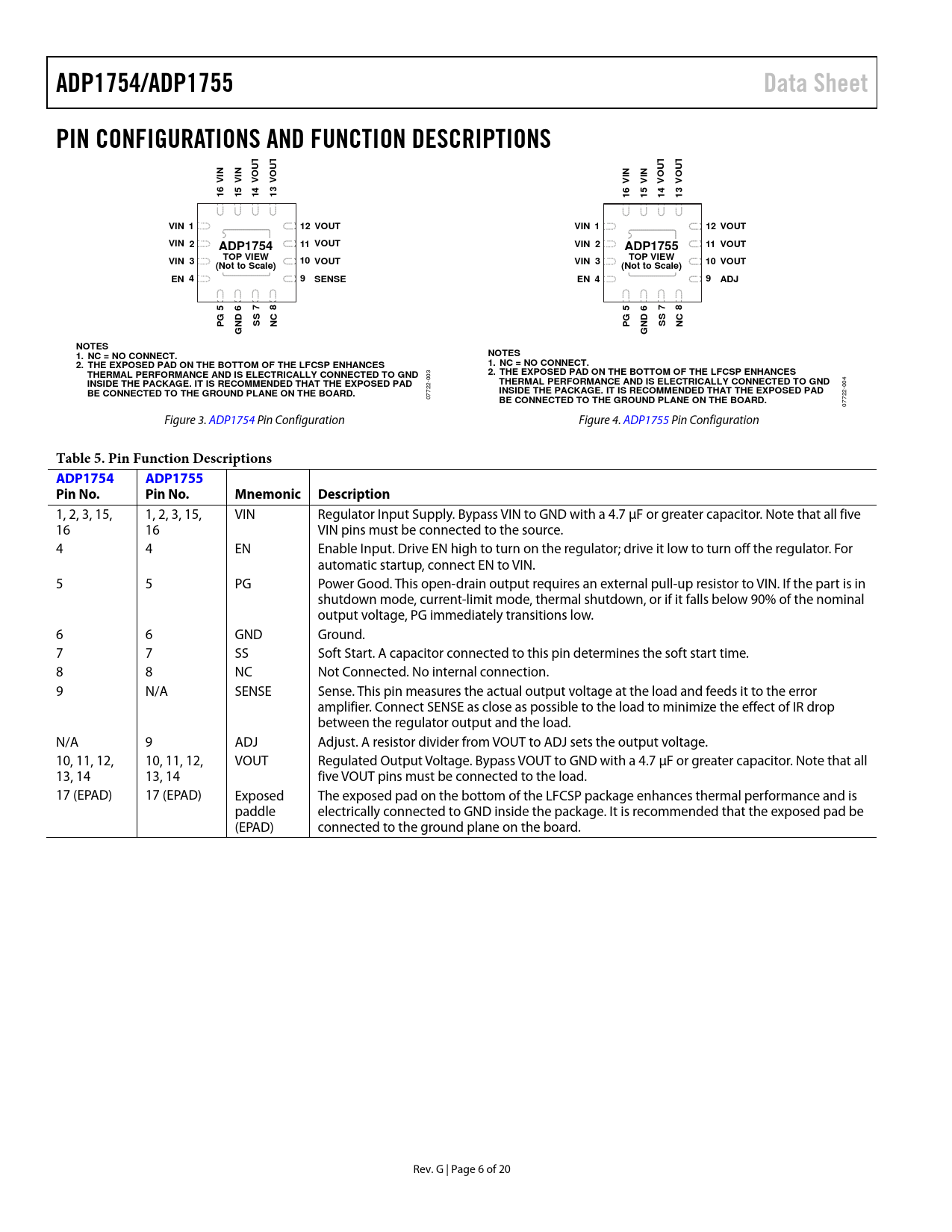 Páginas / Página20 / 6 — ADP1754/ADP1755. Data Sheet. PIN CONFIGURATIONS AND FUNCTION …