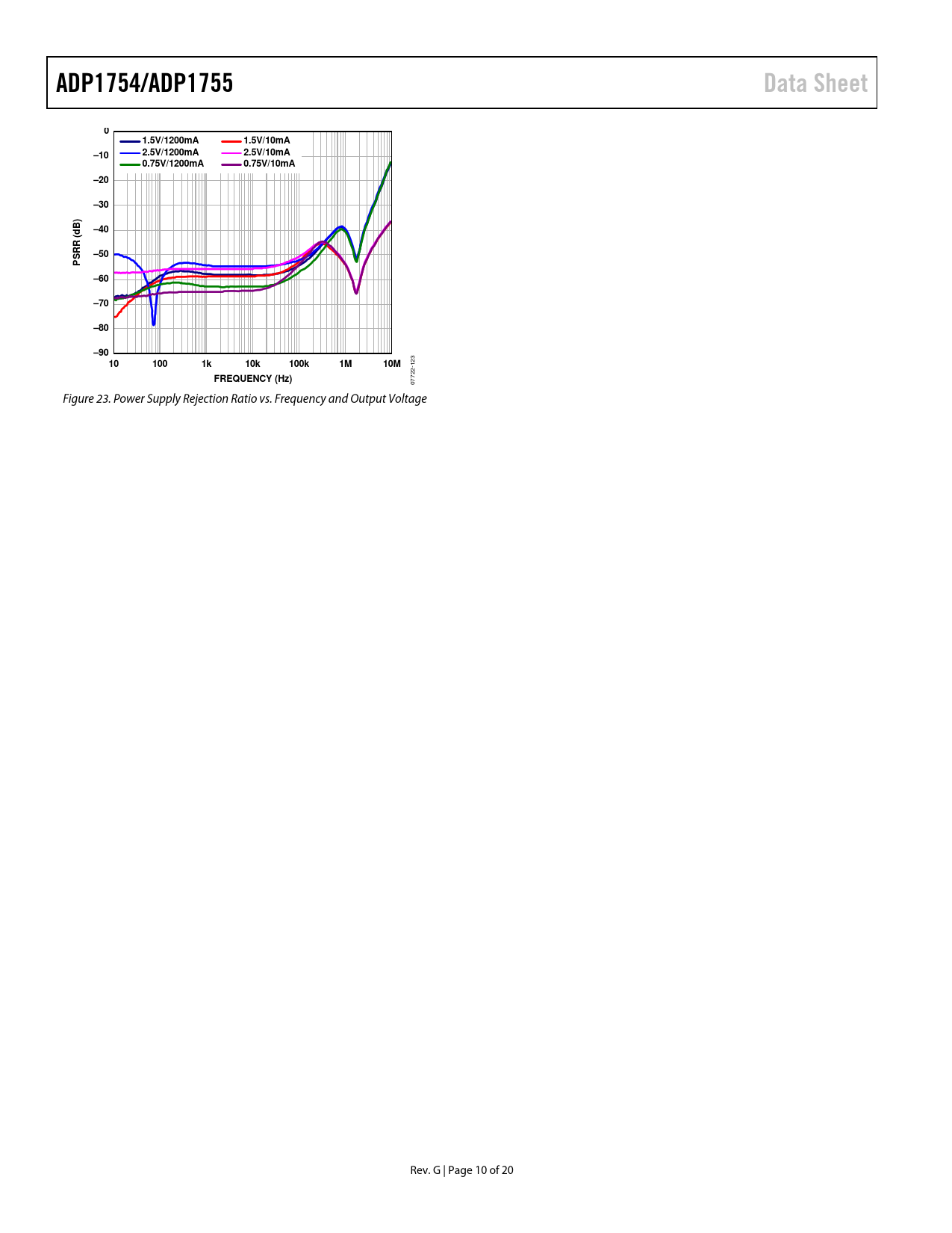 ADP1754/ADP1755. Data Sheet. 1.5V/1200mA. 1.5V/10mA. –10. 2.5V/1200mA. 2.5V/10mA. 0.75V/1200mA. 0.75V/10mA. –20. –30. –40. RR (. –50. S P. –60. –70. –80