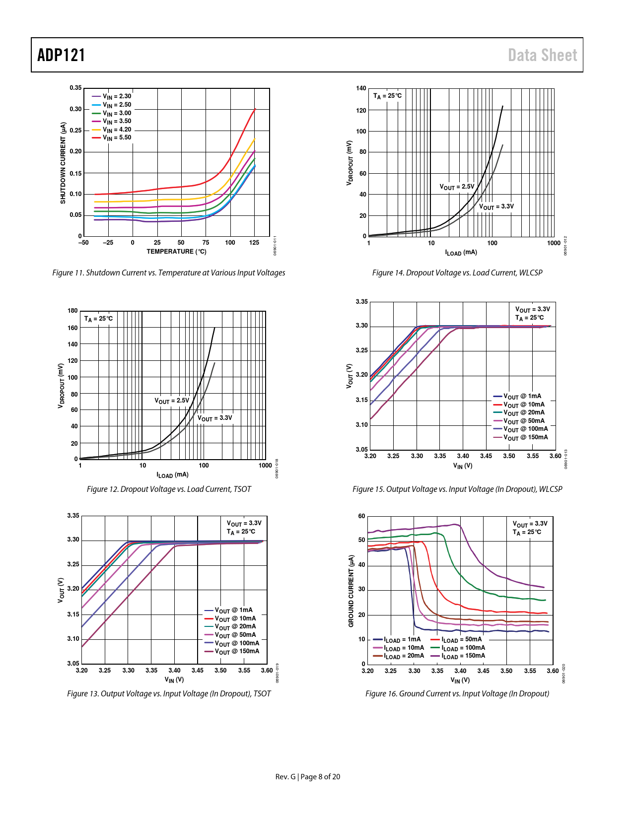 ADP121. Data Sheet. 0.35. 140. IN = 2.30. A = 25°C. 0.30. IN = 2.50. 120. IN = 3.00. VIN = 3.50. A) µ 0.25. IN = 4.20. 100. IN = 5.50. 0.20. UT O