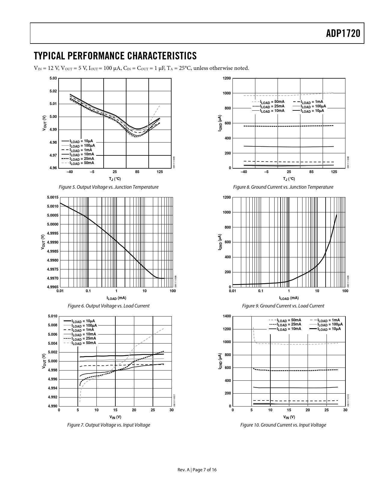 ADP1720. TYPICAL PERFORMANCE CHARACTERISTICS. 5.03. 1200. 5.02. 1000. 5.01. LOAD = 50mA. LOAD = 1mA. 800. LOAD = 25mA. LOAD = 100µA
