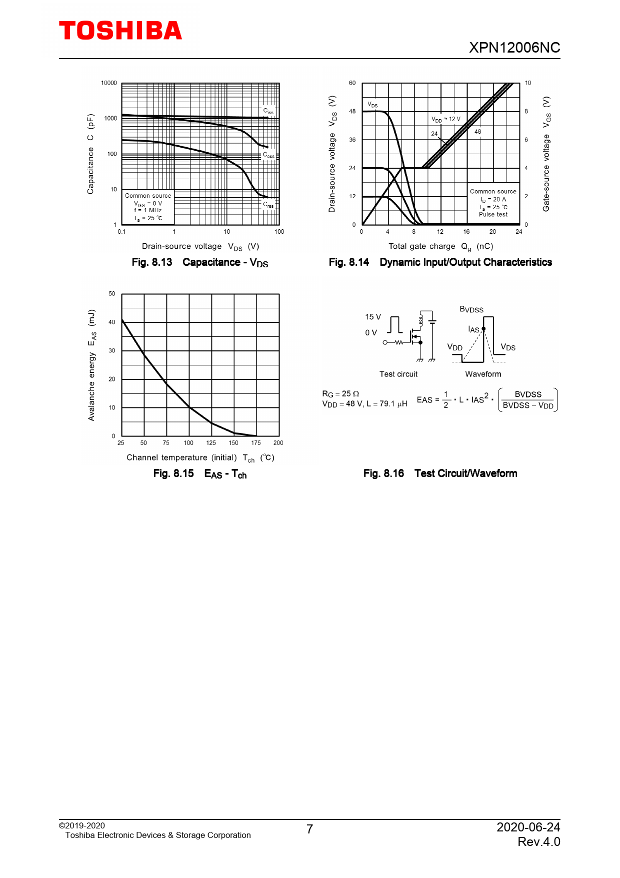 XPN12006NC. Fig. 8.13. Capacitance. -. VDS. Fig. 8.14. Dynamic. Input/Output. Characteristics. Fig. 8.15. EAS. -. Tch. Fig. 8.16. Test. Circuit/Waveform