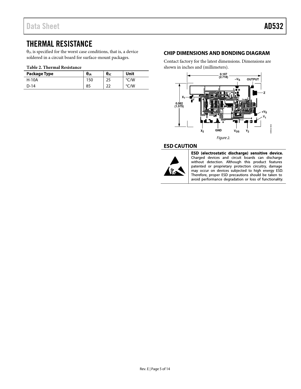Páginas / Página14 / 5 — Data Sheet. AD532. THERMAL RESISTANCE. CHIP DIMENSIONS AND BONDING …