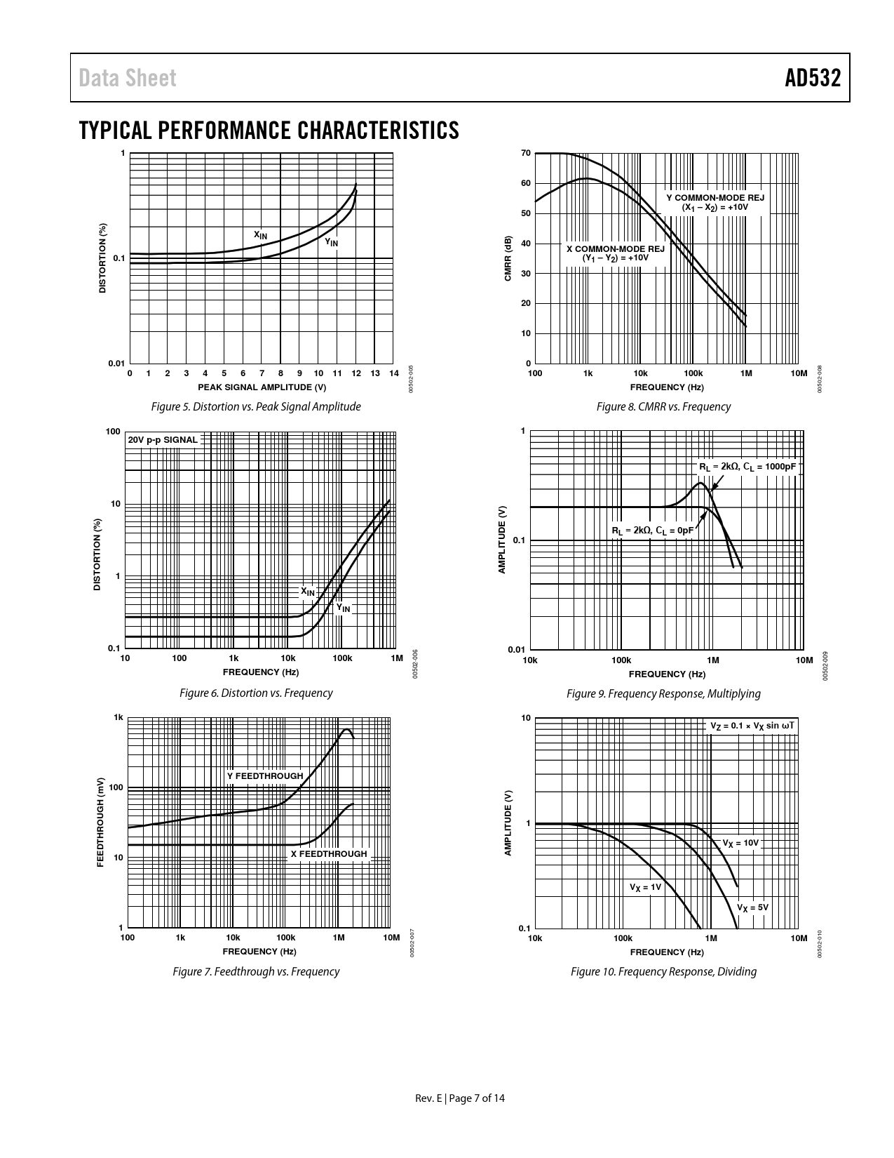 Data Sheet. AD532. TYPICAL PERFORMANCE CHARACTERISTICS. Y COMMON-MODE REJ. 1 – X2) = +10V. ) % (. XIN. YIN. X COMMON-MODE REJ. TION 0.1