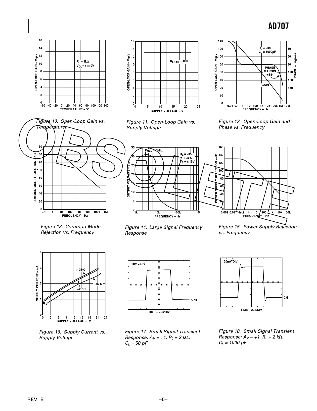 AD707 140 120 RL = 2k CL = 1000pF 100 V/µV LOAD = 1k L = 1k OUT = 10V PHASE MARGIN =58 PHASE – Degrees 150 GAIN 180 OPEN-LOOP GAIN –