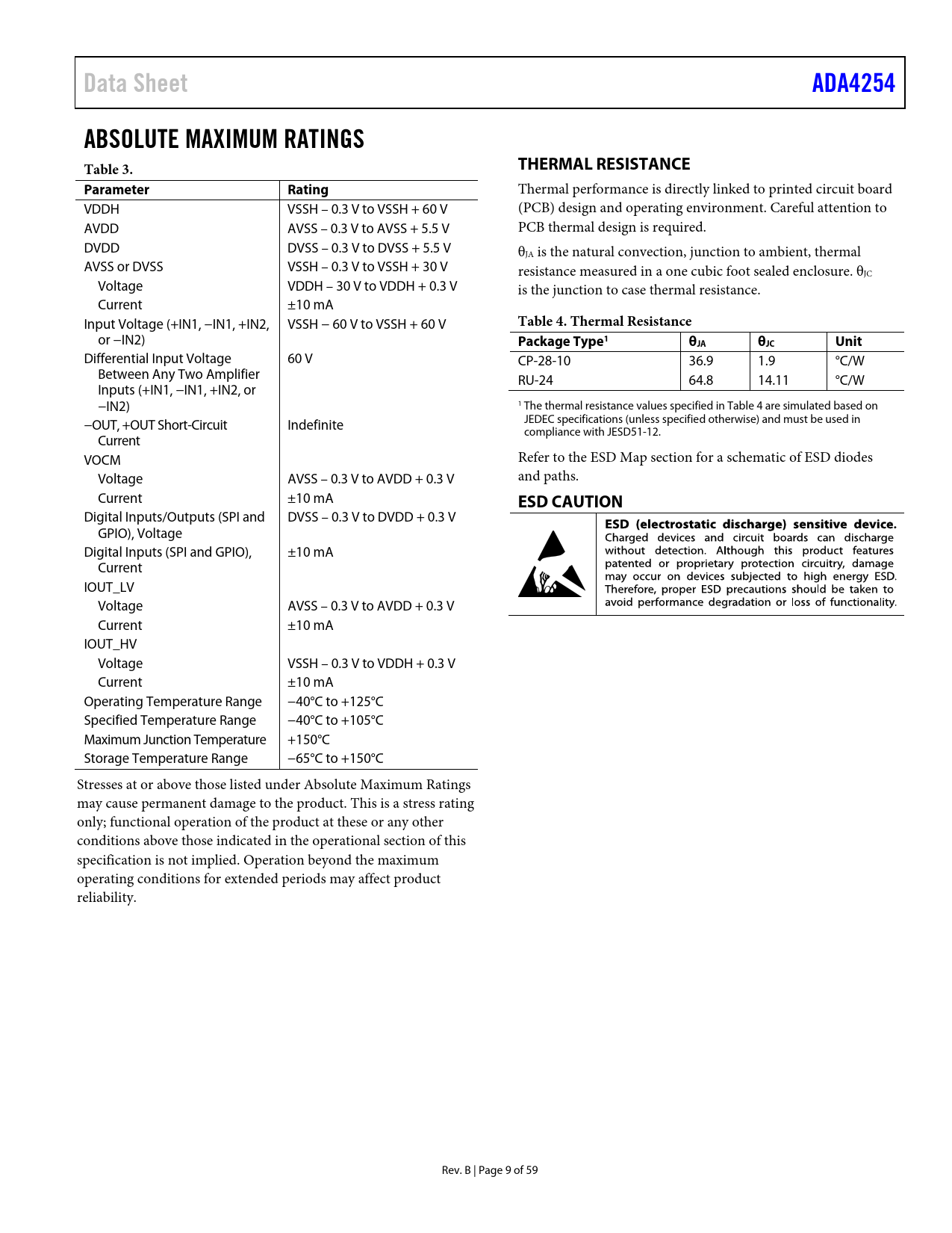 Páginas / Página59 / 9 — Data Sheet. ADA4254. ABSOLUTE MAXIMUM RATINGS Table 3. THERMAL …