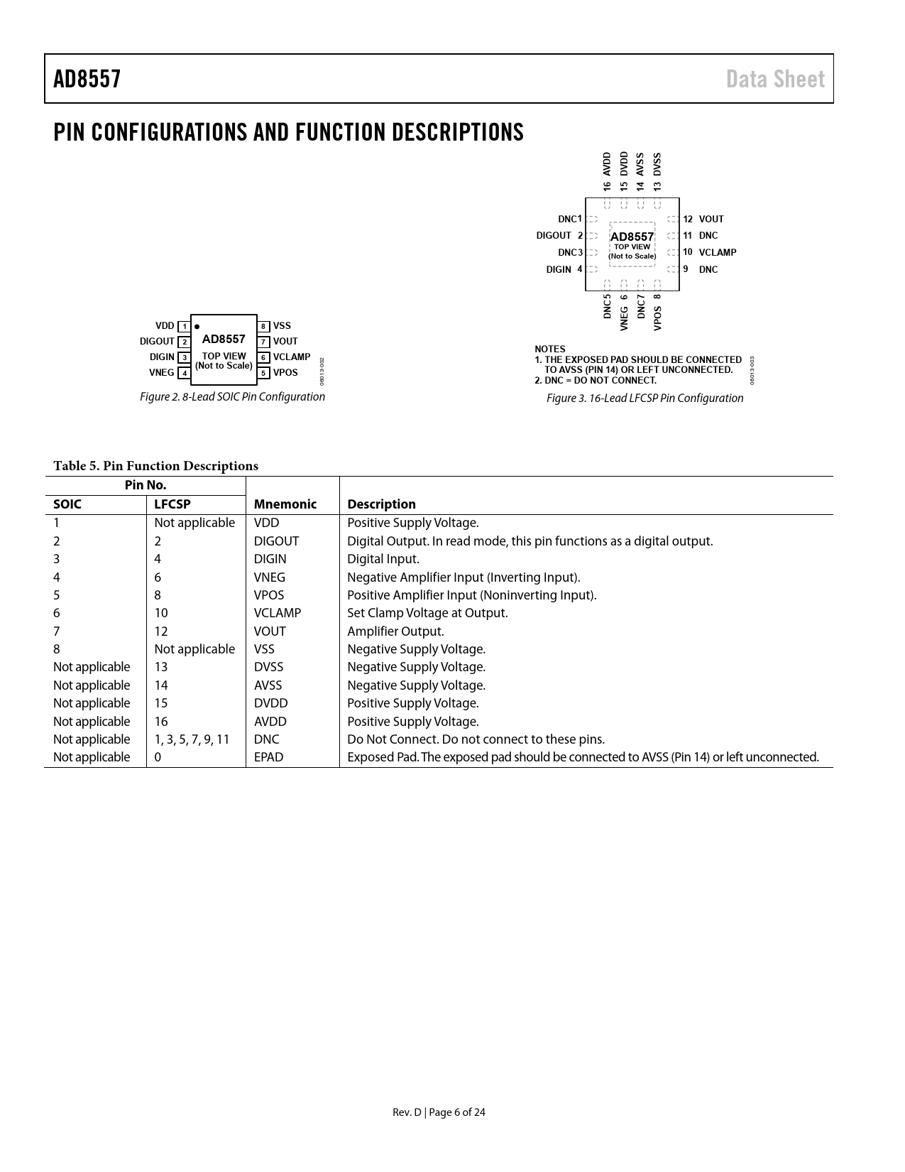 Páginas / Página24 / 6 — AD8557. Data Sheet. PIN CONFIGURATIONS AND FUNCTION DESCRIPTIONS. D D. …