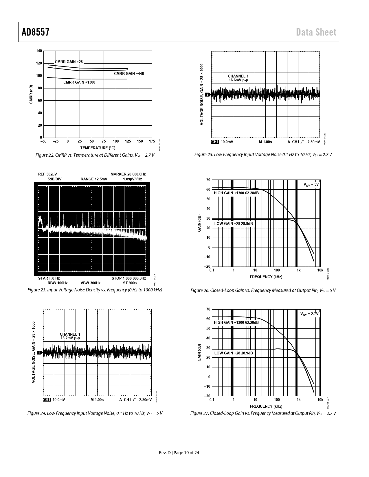 AD8557. Data Sheet. 140. 120. CMRR GAIN +28. 000. 100. CMRR GAIN +448. 8 × 1. CHANNEL 1. 16.6mV p-p. CMRR GAIN +1300. A G 1. RR (. ISE,. O E N