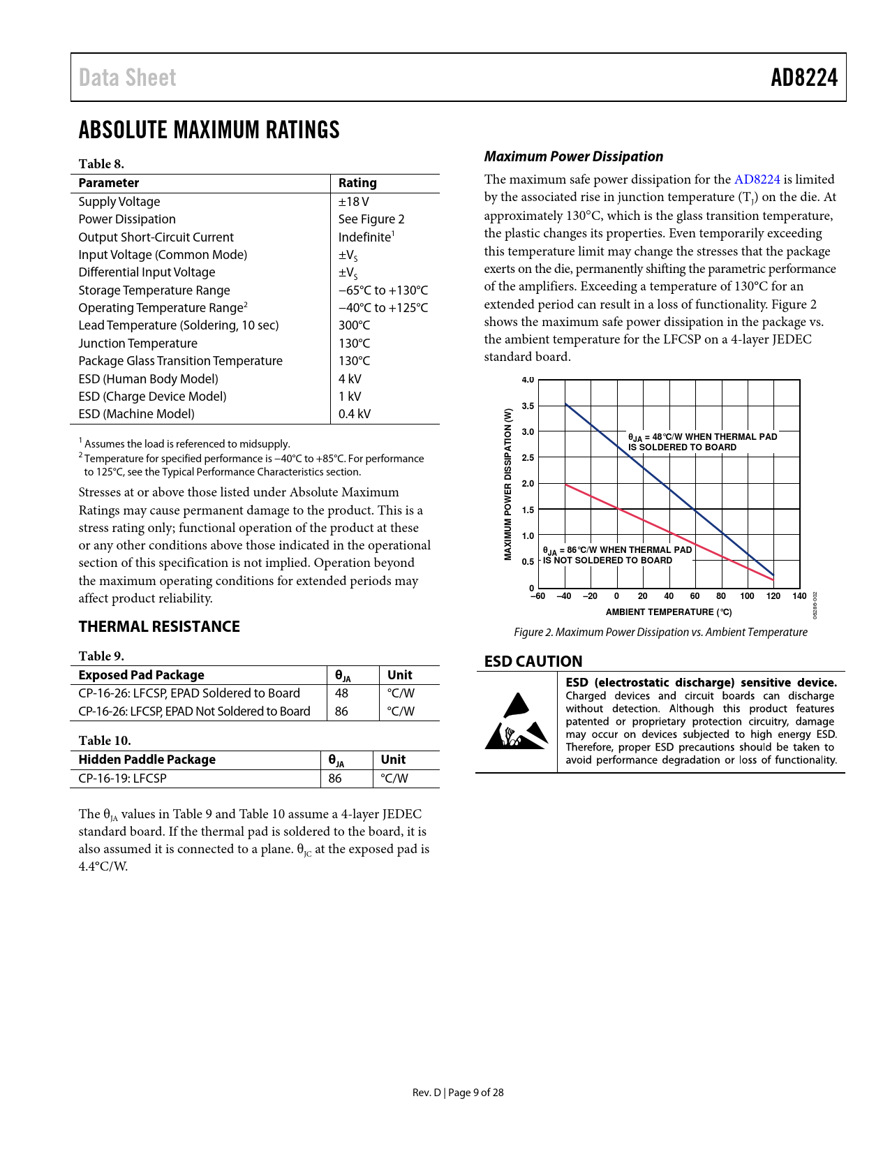 Table 9. ESD CAUTION Exposed Pad Package θ Unit JA