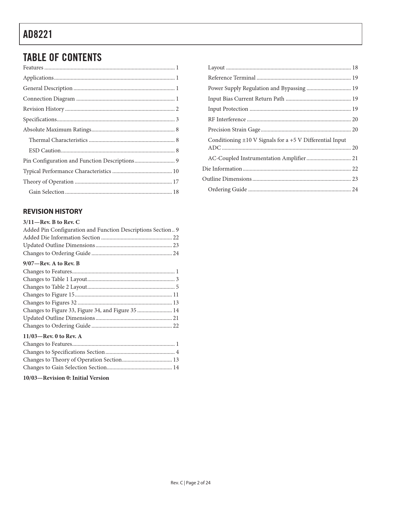 REVISION HISTORY 3/11—Rev B to Rev C 9/07—Rev A to Rev B 11/03—Rev 0 to Rev A 10/03—Revision 0: Initial Version