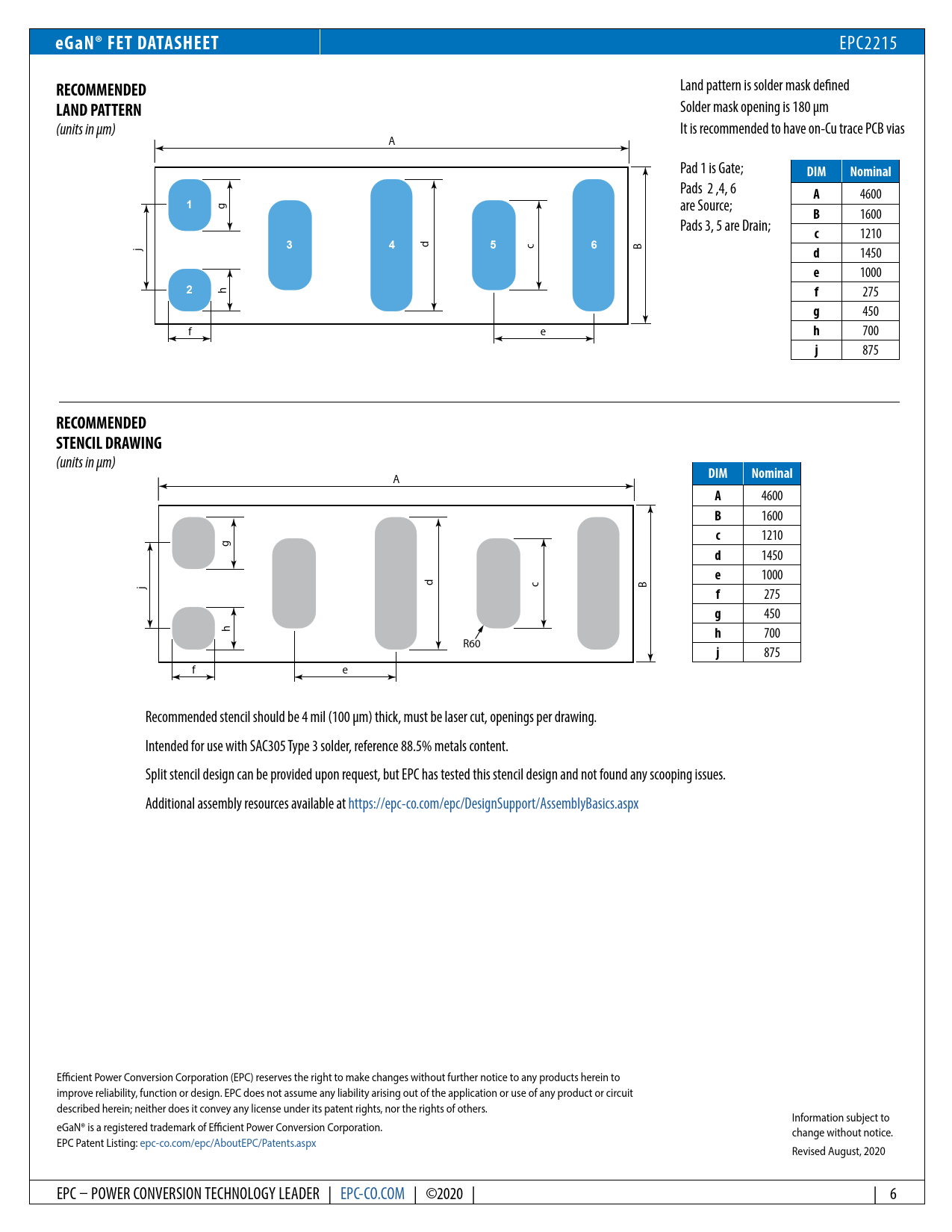 eGaN® FET DATASHEET. RECOMMENDED. LAND PATTERN. DIM. Nominal. STENCIL DRAWING