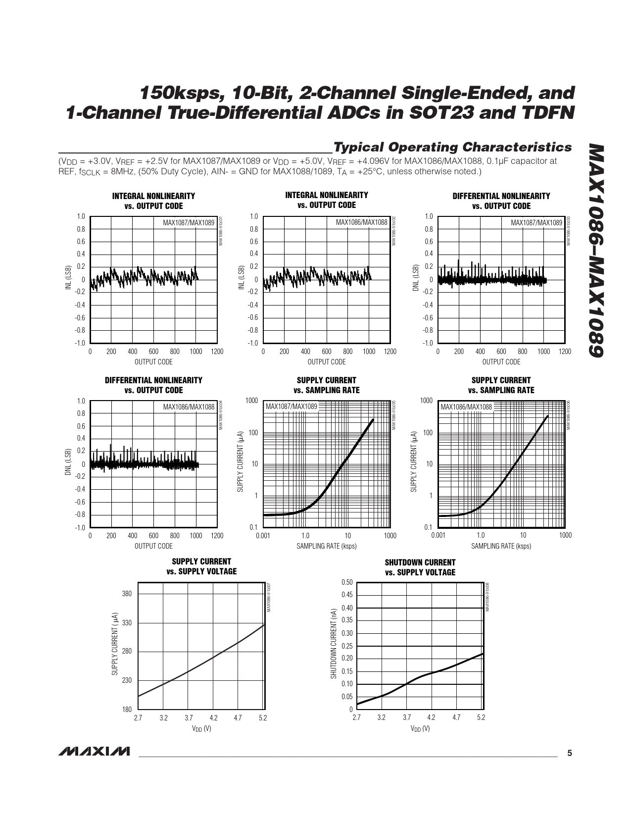 150ksps, 10-Bit, 2-Channel Single-Ended, and 1-Channel True-Differential ADCs in SOT23 and TDFN MAX1086–MAX1089 Typical Operating Characteristics