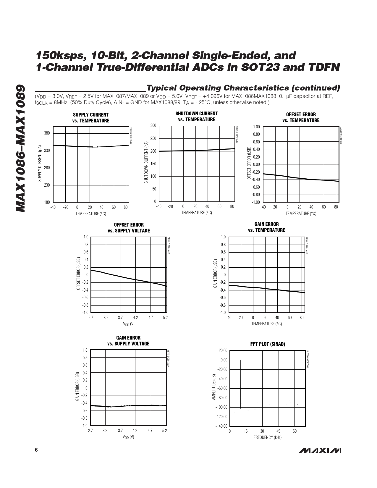 300 1.00 380 0.80 250 MAX1086-9 toc10 0.60 MAX1086-9 toc09 MAX1086-9 toc11 μA) 330 200 0.40 0.20 150 0.00 280 -0.20 100 OFFSET ERROR (LSB) SUPPLY CURRENT ( -0.40 SHUTDOWN CURRENT (nA) 230 50 0.60 -0.80 0 180 -1.00