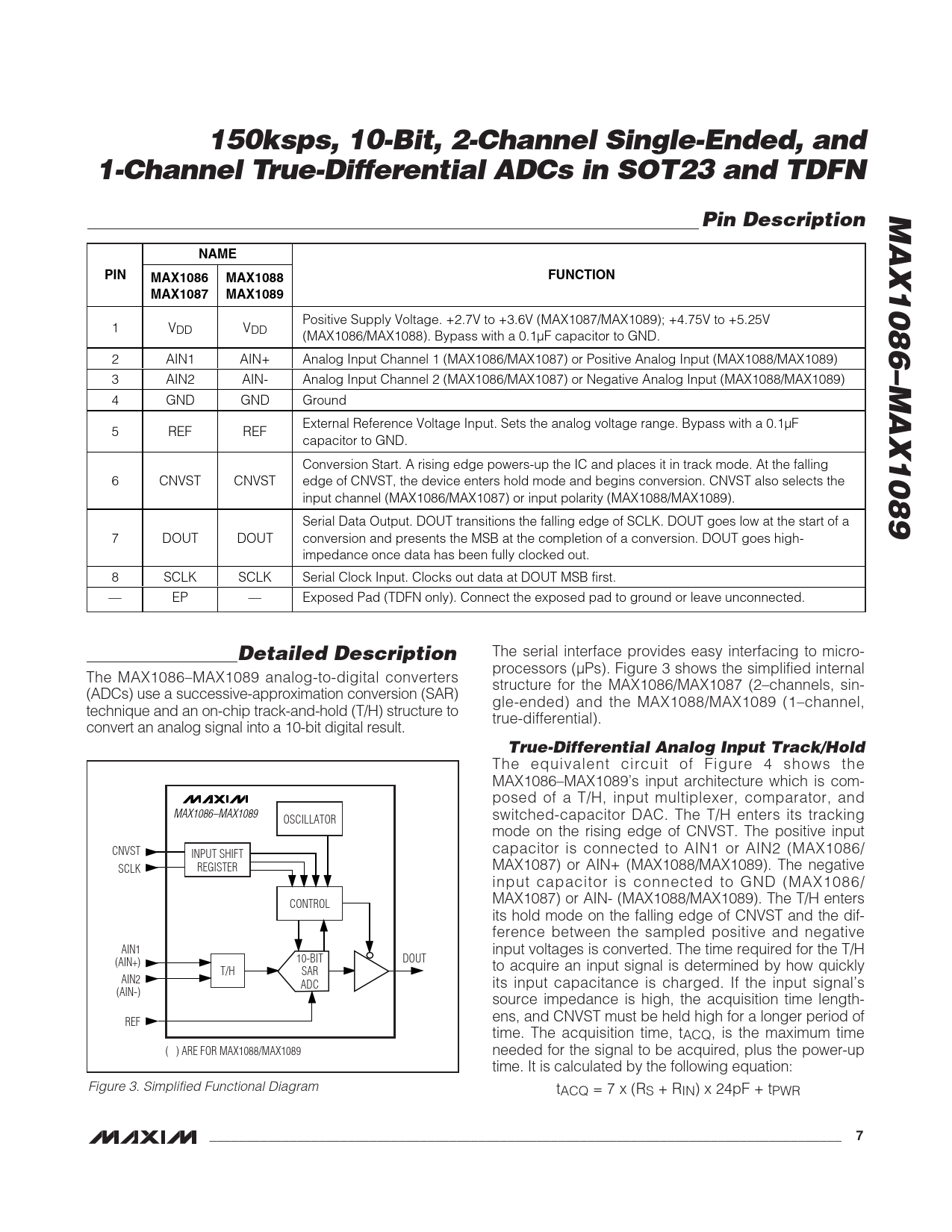 150ksps, 10-Bit, 2-Channel Single-Ended, and. 1-Channel True-Differential ADCs in SOT23 and TDFN. MAX1086–MAX1089