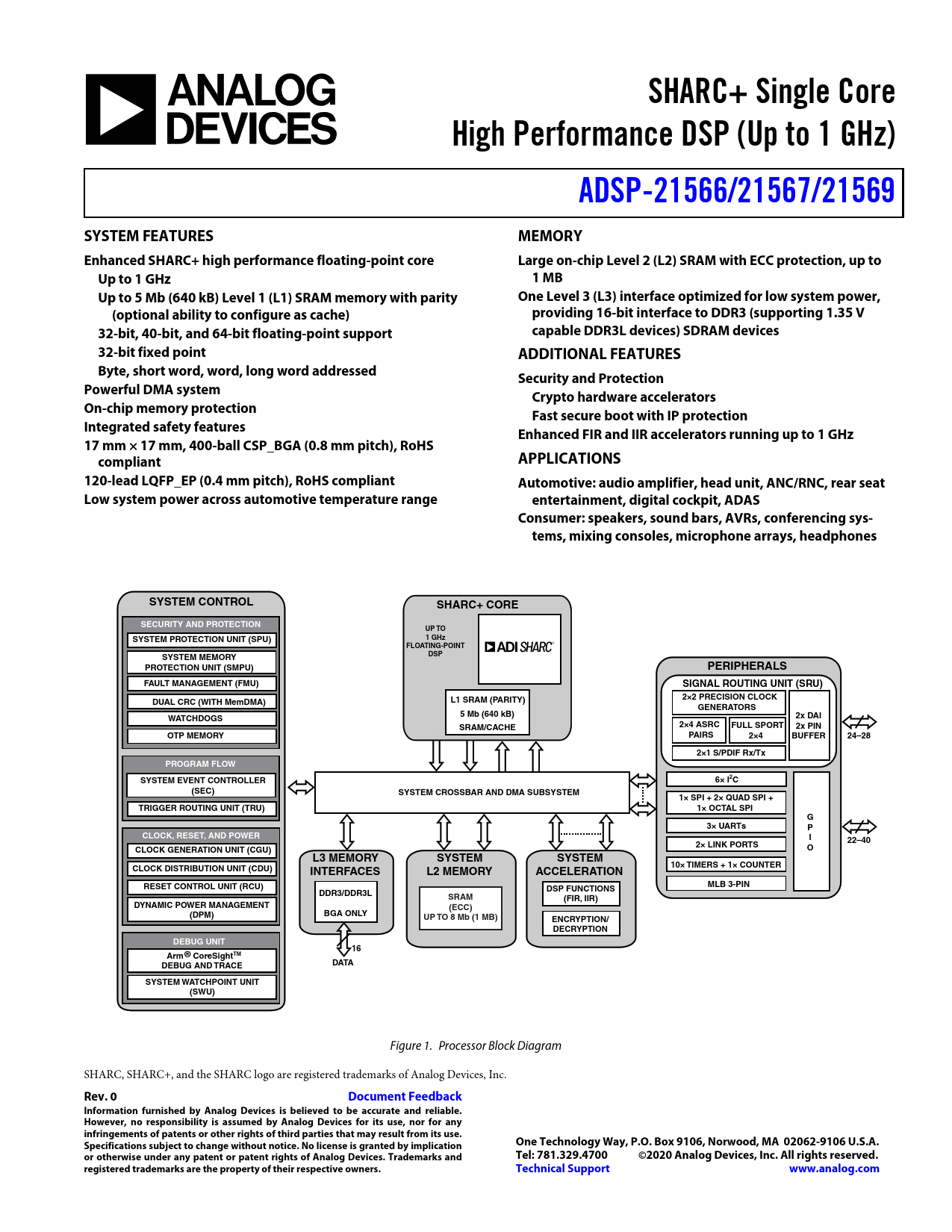 Figure 1. Processor Block Diagram SHARC, SHARC+, and the SHARC logo are registered trademarks of Analog Devices, Inc.