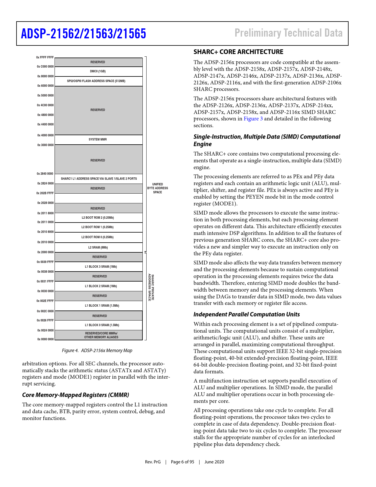 ADSP-21562/21563/21565 Preliminary Technical Data SHARC+ CORE ARCHITECTURE 0x FFFF FFFF RESERVED 0x C000 0000 DMC0 (1GB)
