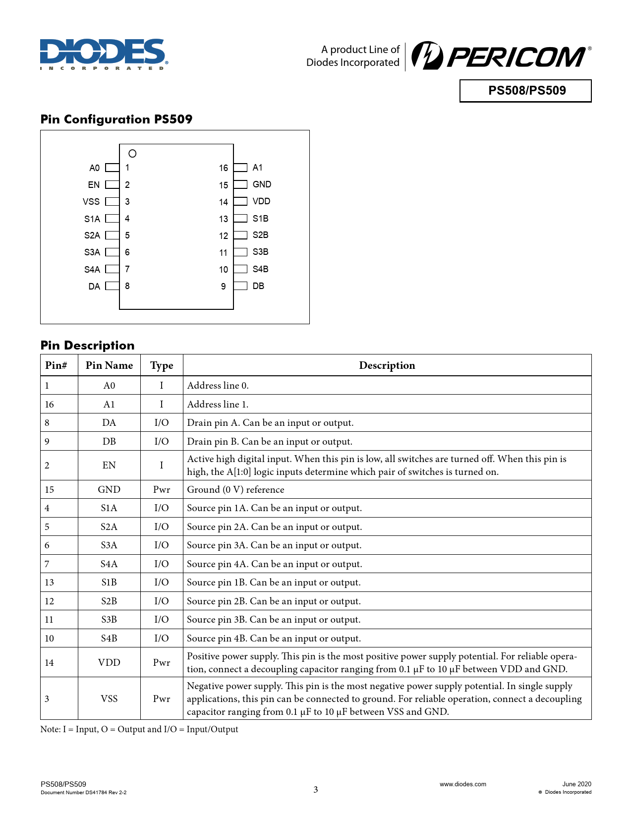 PS508/PS509. Pin Configuration PS509. Pin Description. Pin#. Pin Name. Type. Description
