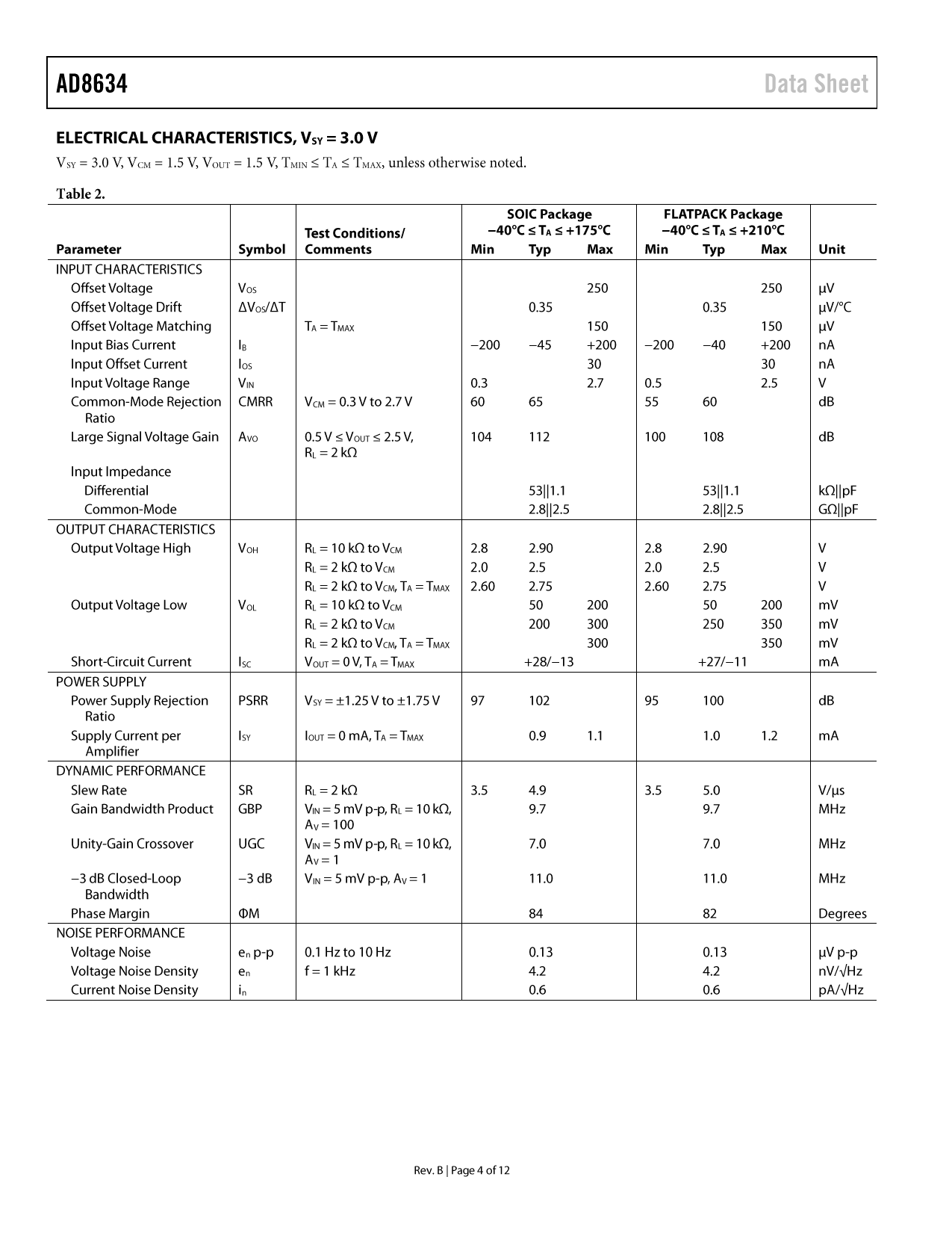 Document Outline FEATURES APPLICATIONS PIN CONFIGURATION GENERAL DESCRIPTION REVISION HISTORY SPECIFICATIONS ELECTRICAL CHARACTERISTICS, VSY = ±15.0 V ELECTRICAL CHARACTERISTICS, VSY = 3.0 V ABSOLUTE MAXIMUM RATINGS PREDICTED LIFETIME vs. OPERATING TEMPERATURE THERMAL RESISTANCE ESD CAUTION TYPICAL PERFORMANCE CHARACTERISTICS APPLICATIONS INFORMATION INPUT PROTECTION OUTLINE DIMENSIONS ORDERING GUIDE