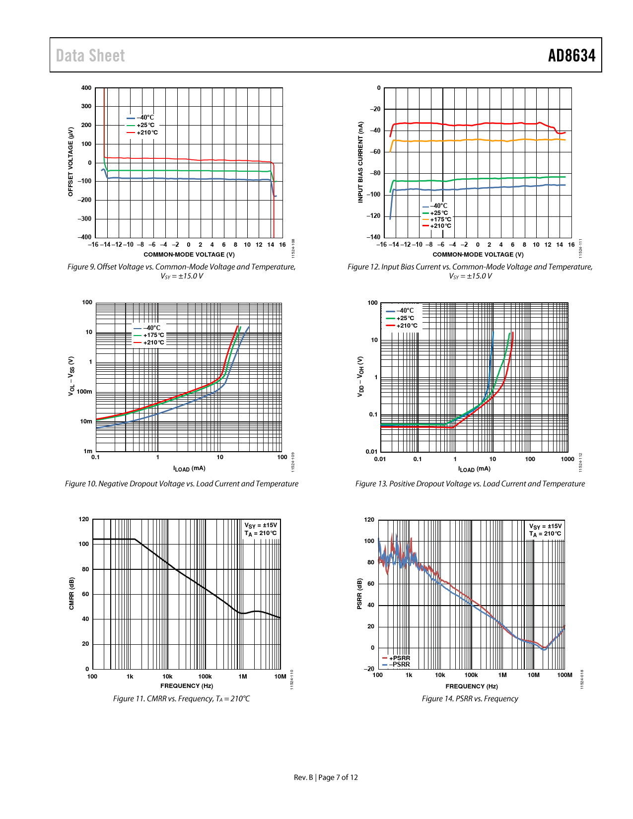 400 0 300 –20 –40°C ) 200 +25°C A V) +210°C –40 (n (µ T E 100 G EN A R –60 R LT U 0 C VO S –80 IA SET –100 B F T F O PU –100 –200 IN –40°C +25°C –300 –120 +175°C +210°C –400 –140