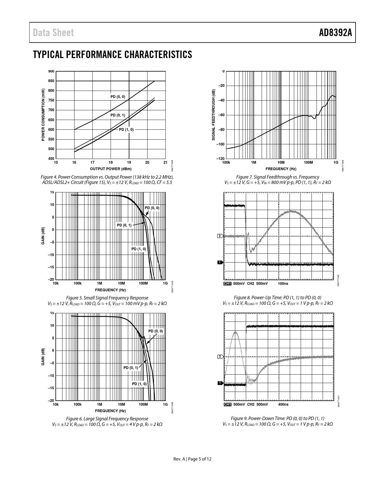 Data Sheet. AD8392A. TYPICAL PERFORMANCE CHARACTERISTICS. 900. 850. –20. 800. PD (0, 0). N (. 750. H (. –40. T P. 700. HRO. PD (0, 1). –60. 650. E E F