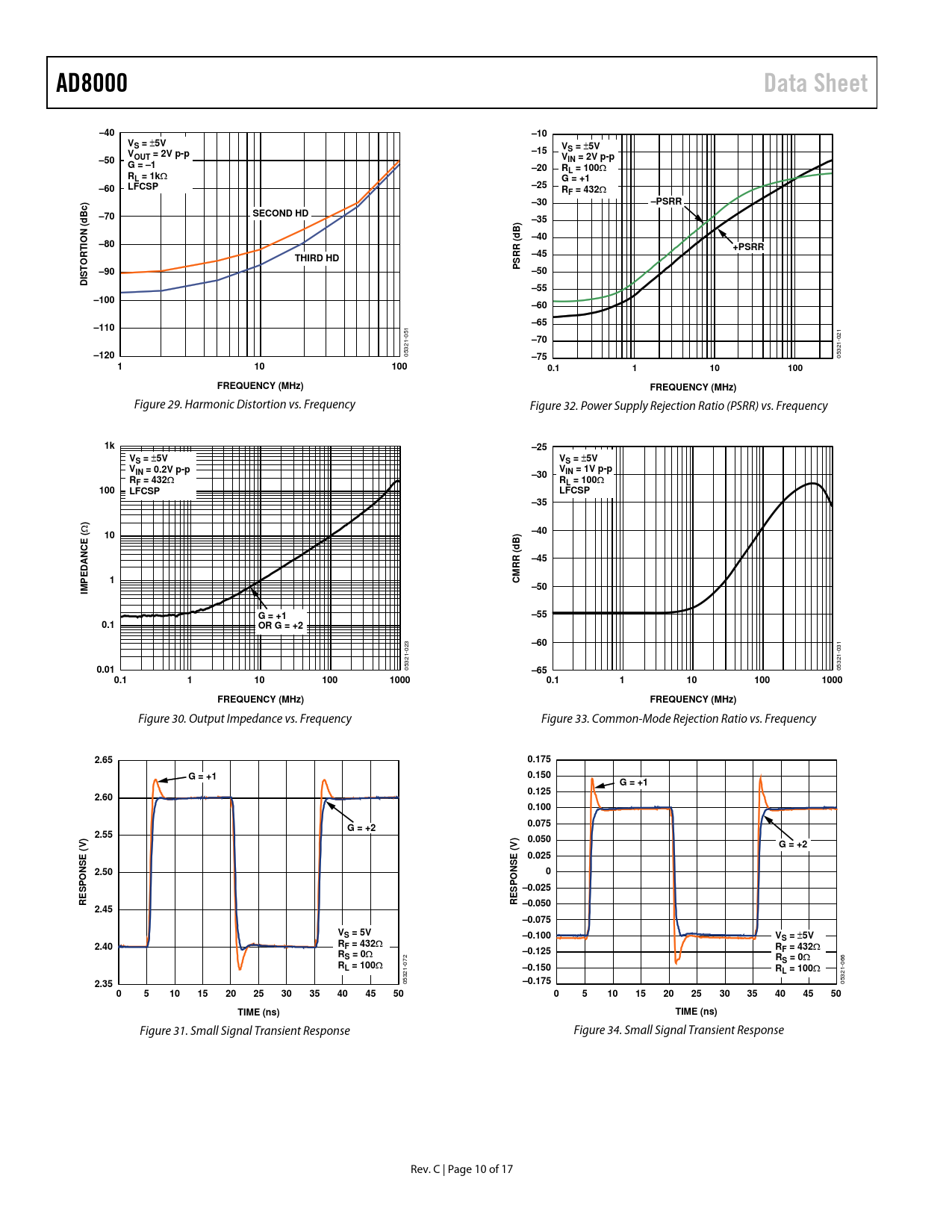 AD8000. Data Sheet. –40. –10. VS =. –15. –50. OUT = 2V p-p. VIN = 2V p-p. G = –1. –20. RL = 100. RL = 1k. G = +1. –60. LFCSP. –25. RF = 432. –30. –PSRR. Bc). –70