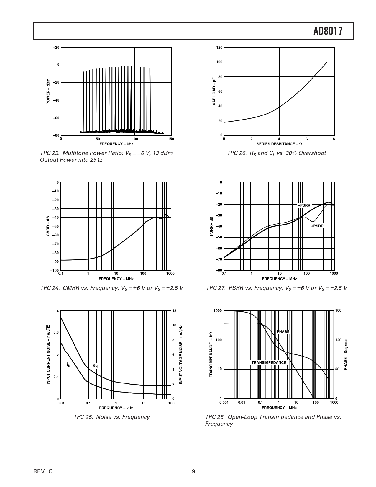 TPC 25. Noise vs. Frequency TPC 28. Open-Loop Transimpedance and Phase vs. Frequency REV. C –9–