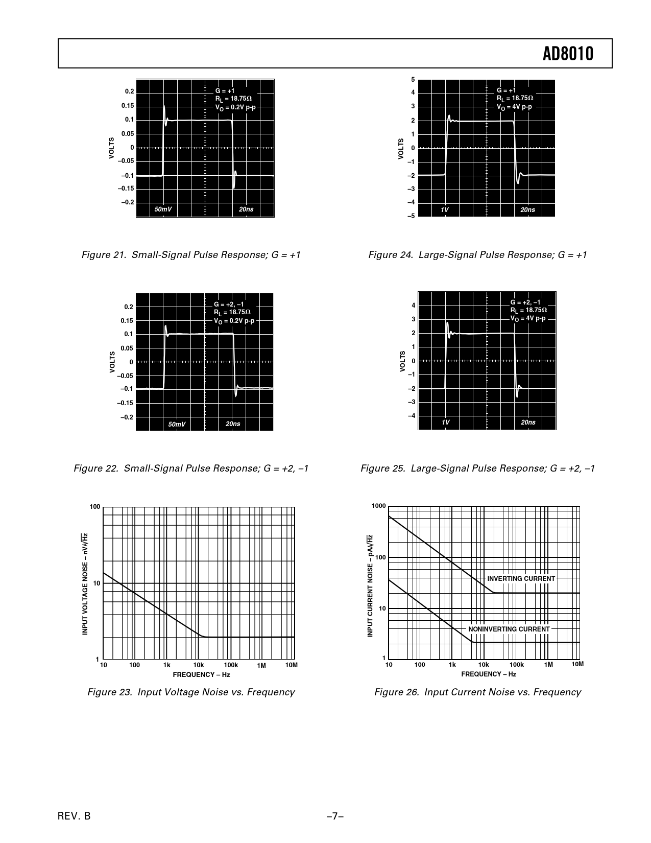 Figure 23. Input Voltage Noise vs. Frequency Figure 26. Input Current Noise vs. Frequency REV. B –7–