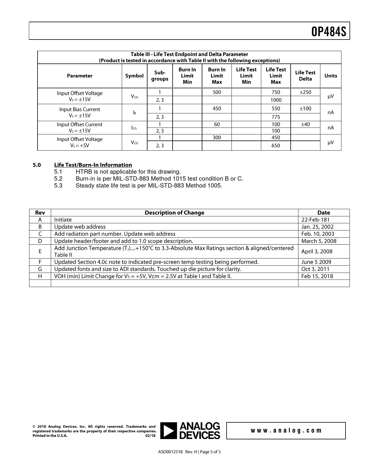 5.1. HTRB. is. not. applicable. for. this. drawing. 5.2. Burn-in. is. per. MIL-STD-883. Method. 1015. test. condition. B. or. C. 5.3. Steady. state. life. test. is. per