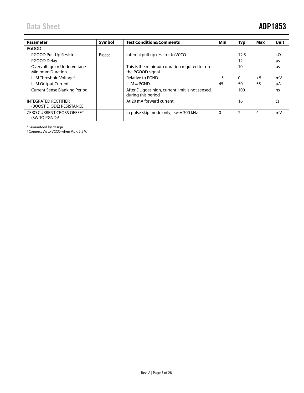 Data Sheet. ADP1853. Parameter. Symbol. Test Conditions/Comments. Min. Typ. Max. Unit