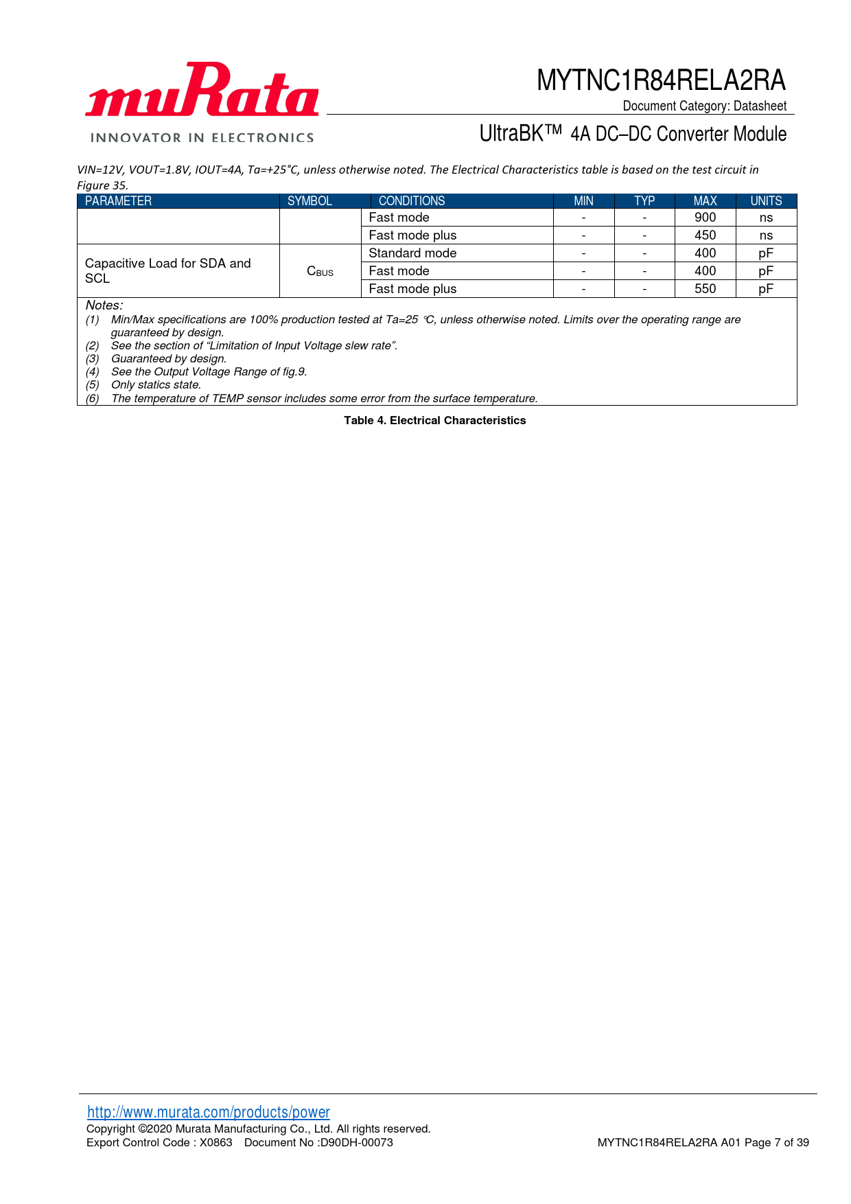Table 4. Electrical Characteristics http://www.murata.com/products/power