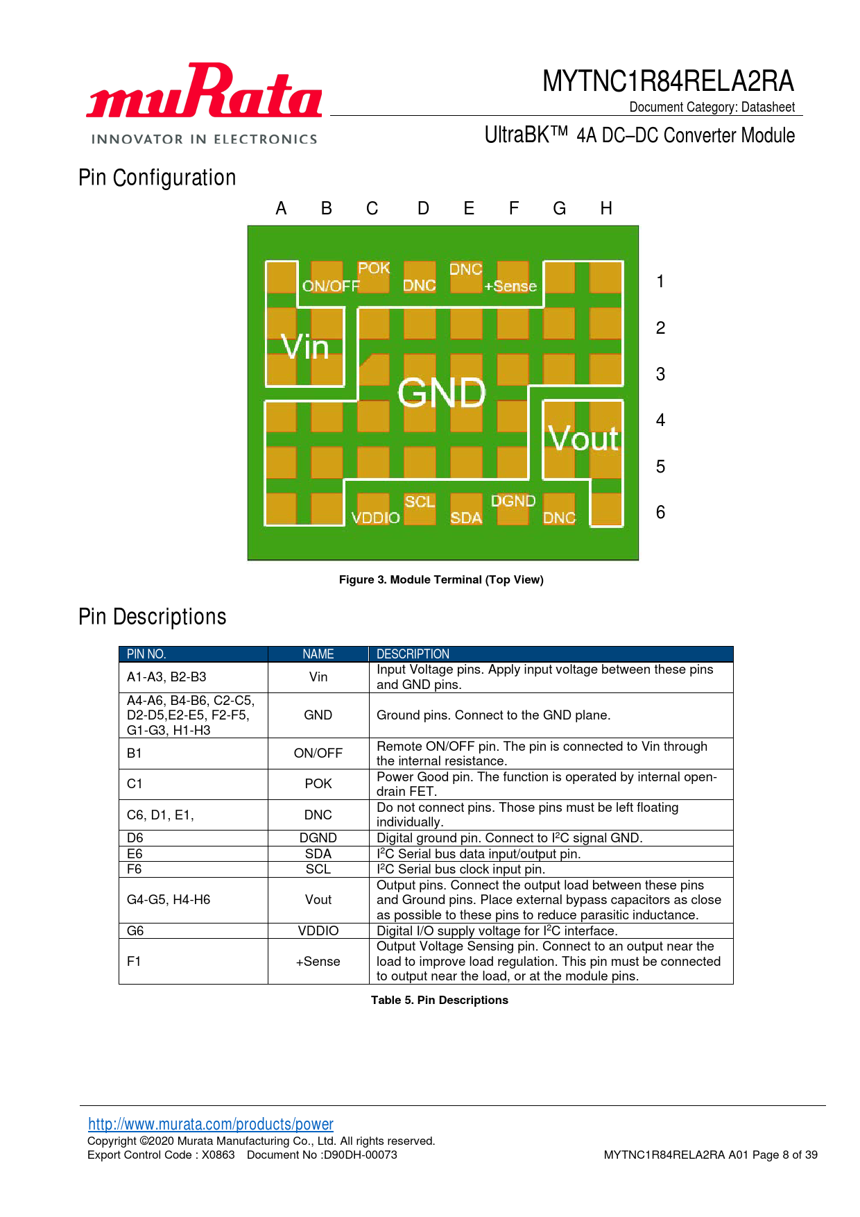 Table 5. Pin Descriptions http://www.murata.com/products/power
