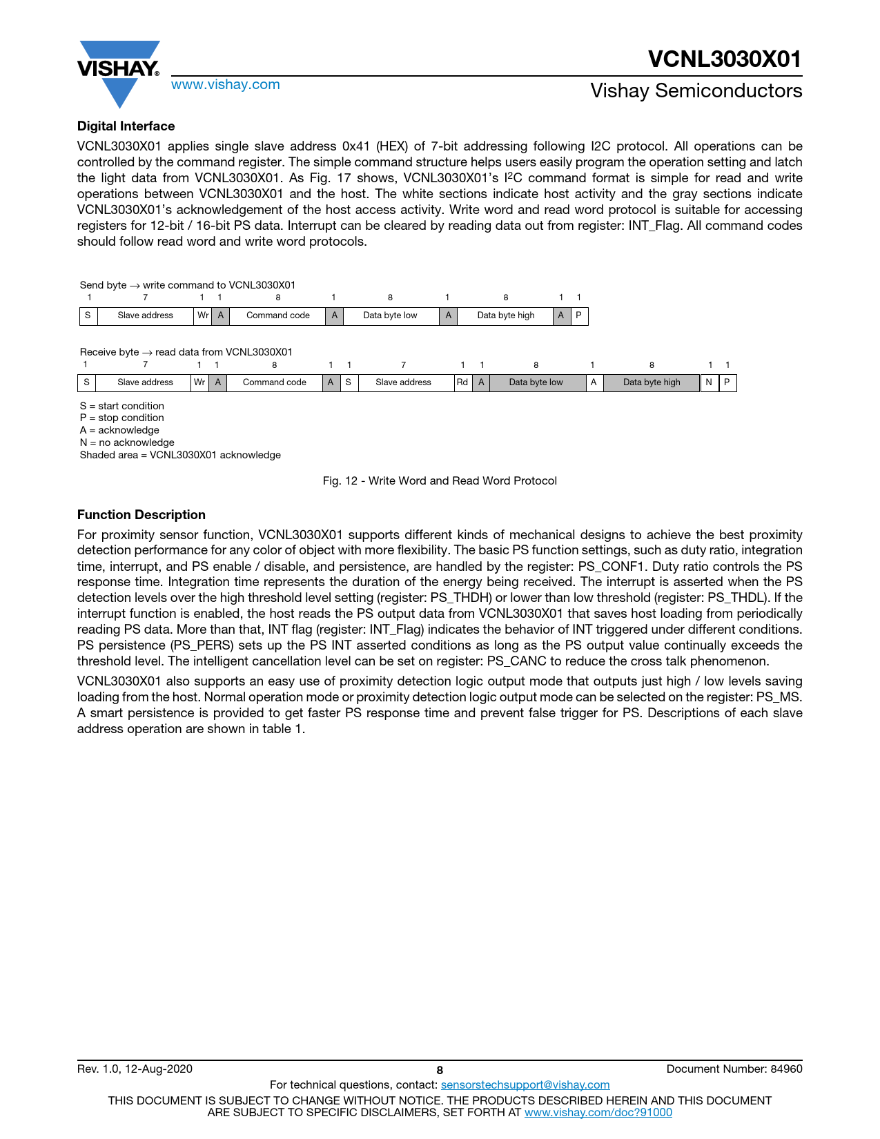 VCNL3030X01 Digital Interface Function Description