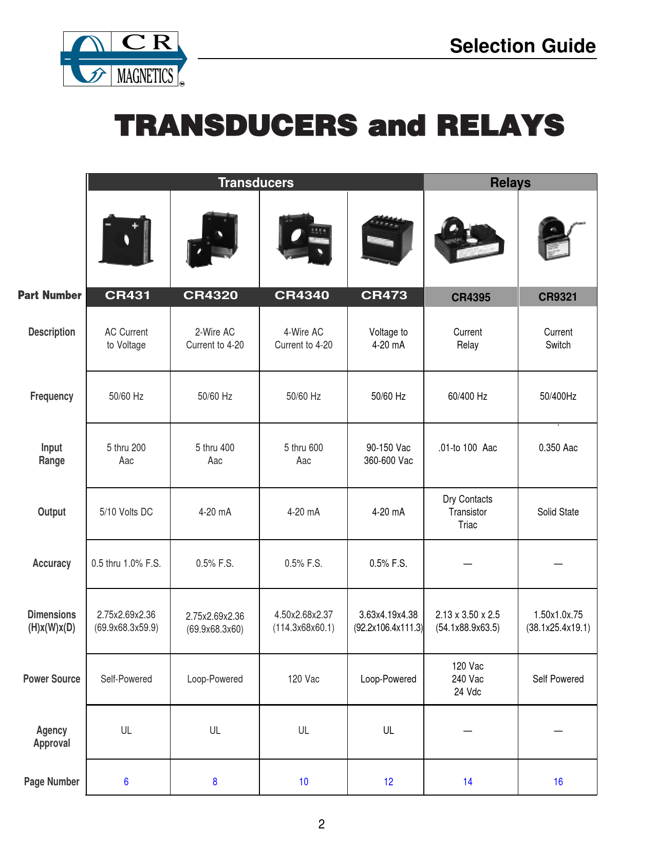Selection Guide TRANSDUCERS and RELAYS Transducers Relays Part Number CR431 CR4320 CR4340 CR473 CR4395 CR9321 Description