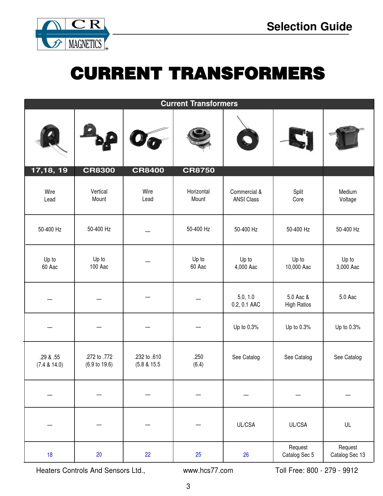 Selection Guide. CURRENT TRANSFORMERS. Current Transformers. 17,18, 19. CR8300. CR8400. CR8750