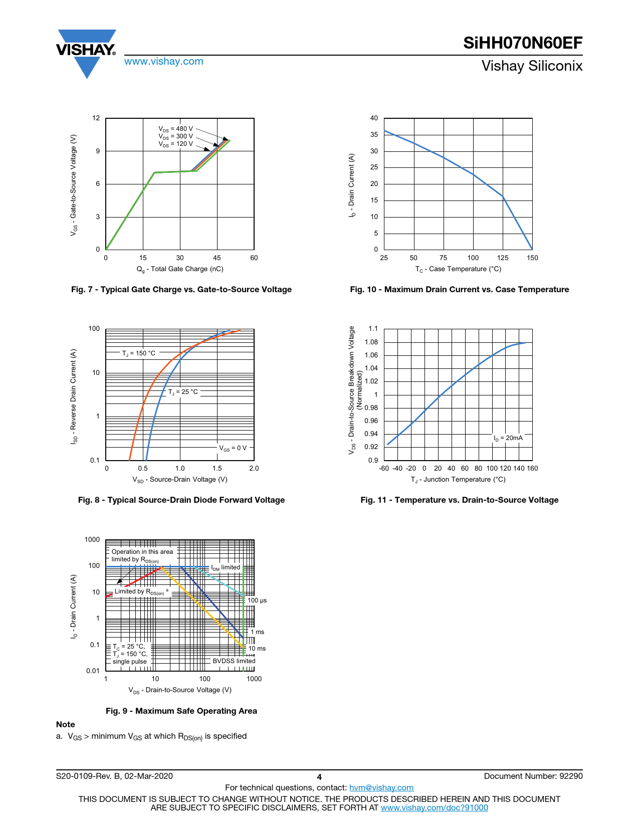 SiHH070N60EF. Fig. 7 - Typical Gate Charge vs. Gate-to-Source Voltage. Fig. 10 - Maximum Drain Current vs. Case Temperature
