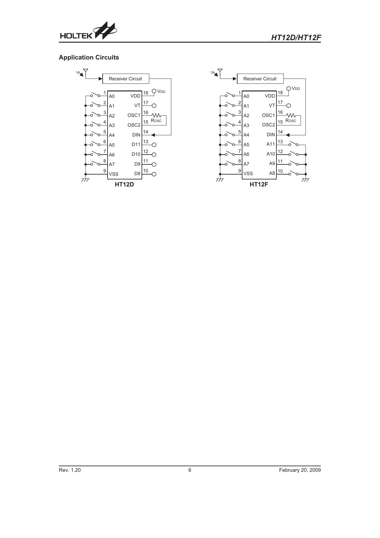 Páginas / Página12 / 6 — HT12D/HT12F. Application Circuits. H T 1 2 D. H T 1 2 F