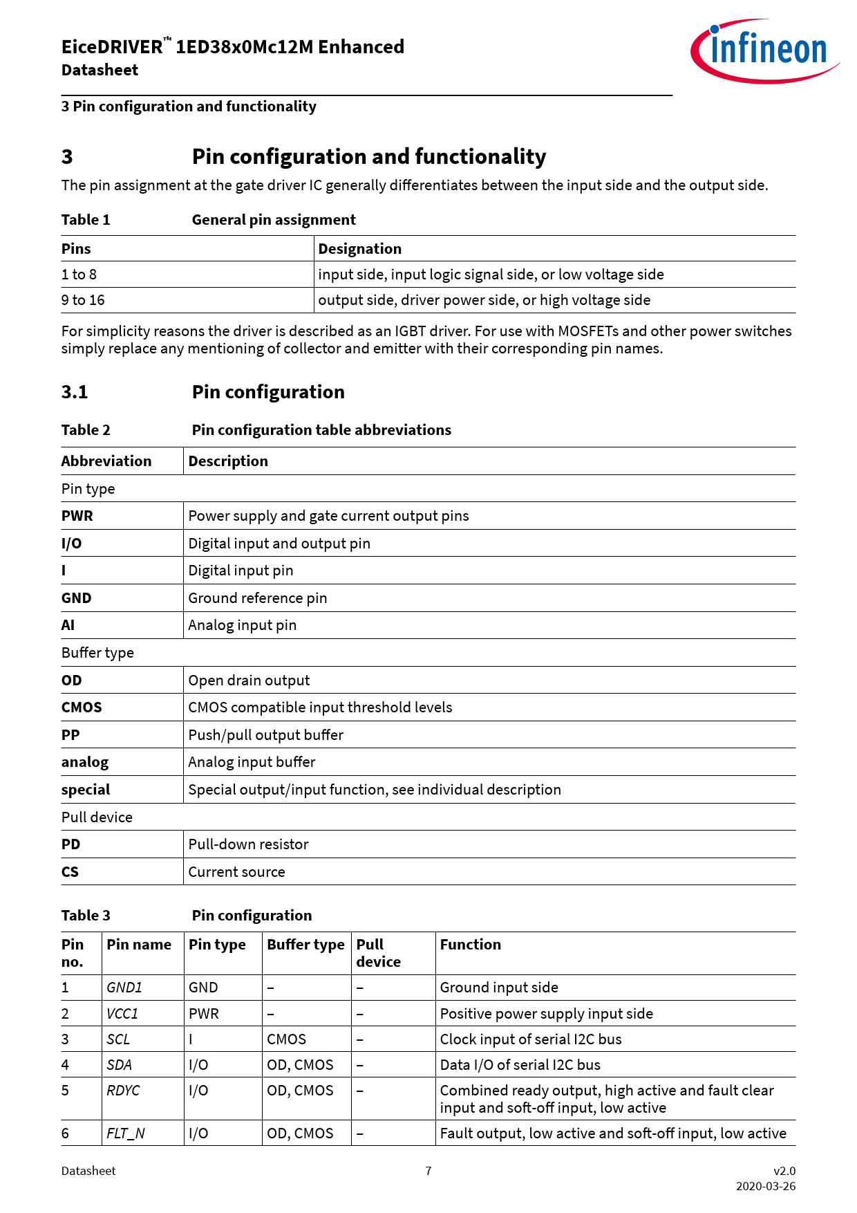EiceDRIVER™ 1ED38x0Mc12M Enhanced. Datasheet. 3 Pin configuration and functionality. Pin configuration and functionality