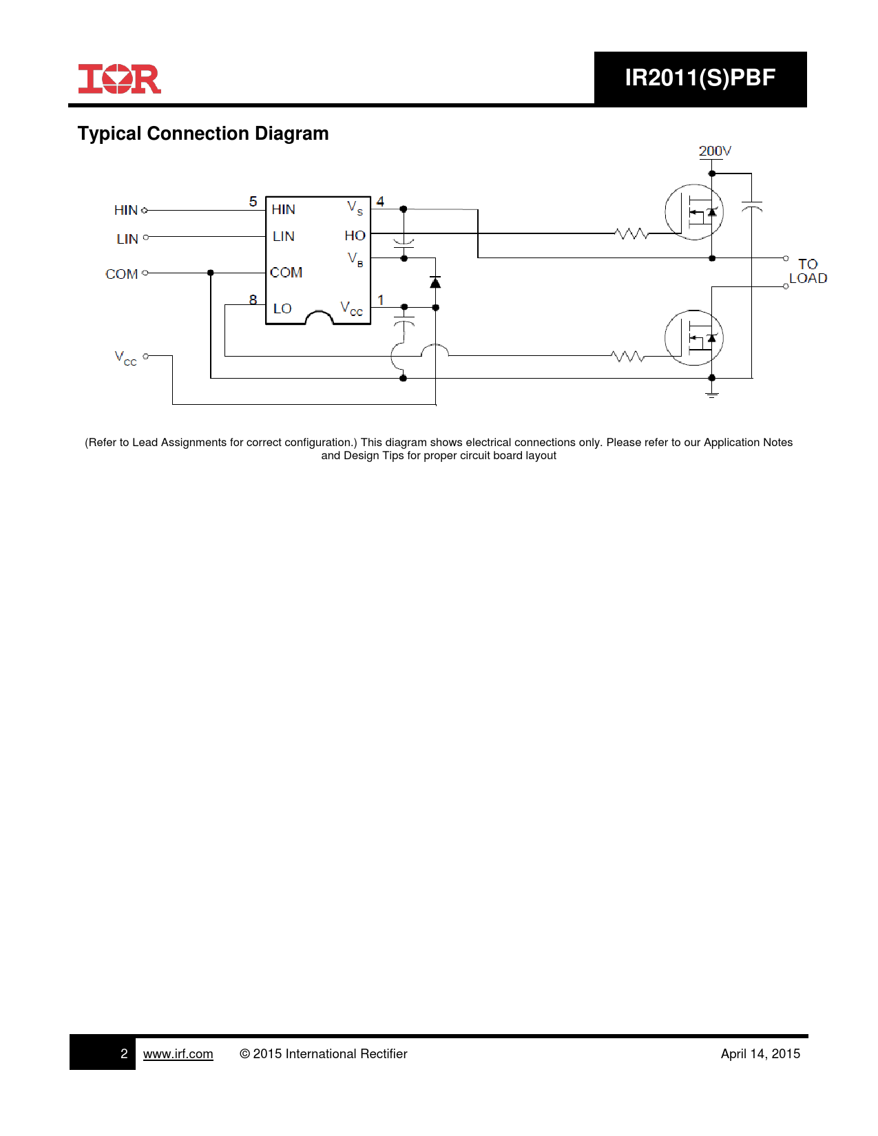 (Refer to Lead Assignments for correct configuration.) This diagram shows electrical connections only. Please refer to our Application Notes and Design Tips for proper circuit board layout 2 www.irf.com © 2015 International Rectifier April 14, 2015