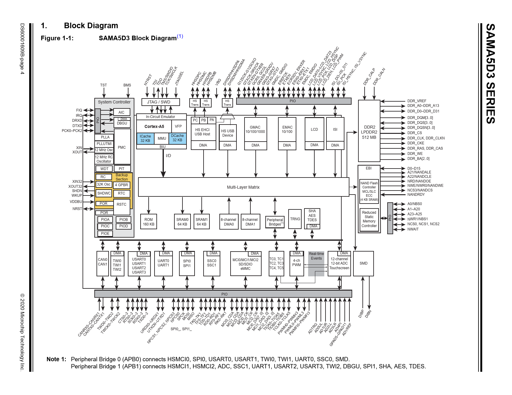 SAMA5D3 SERIES. Block Diagram. Figure 1-1:. SAMA5D3 Block Diagram. Cortex-A5. Note 1: