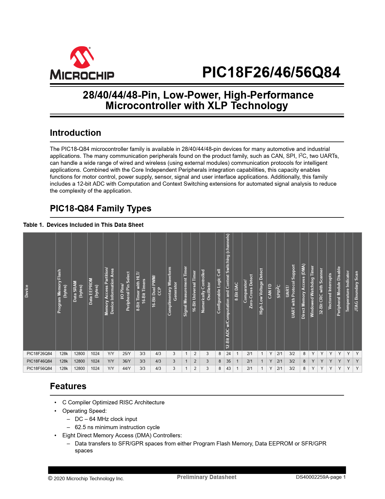 PIC18F26/46/56Q84. 28/40/44/48-Pin, Low-Power, High-Performance. Microcontroller with XLP Technology. Introduction