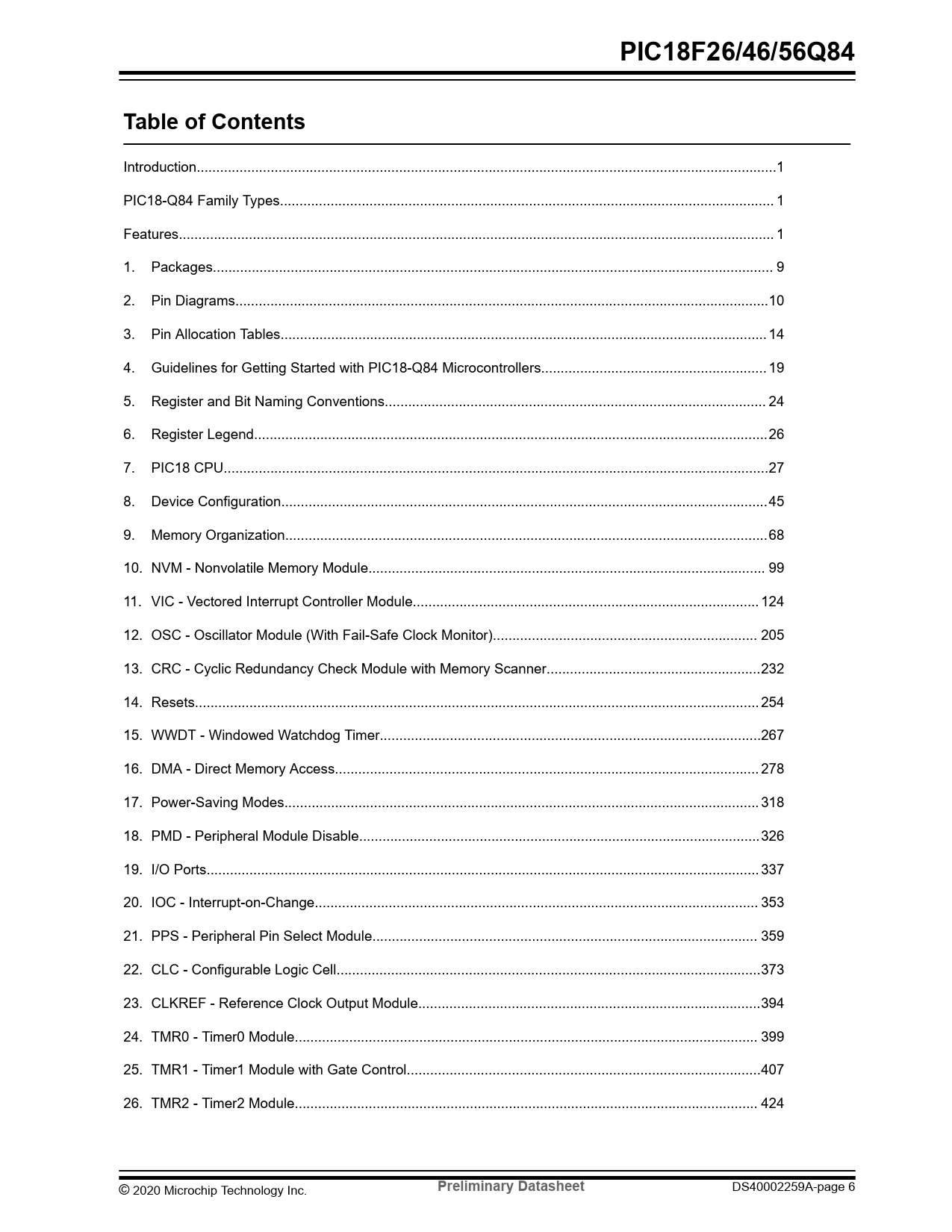 PIC18F26/46/56Q84. Table of Contents. Preliminary Datasheet