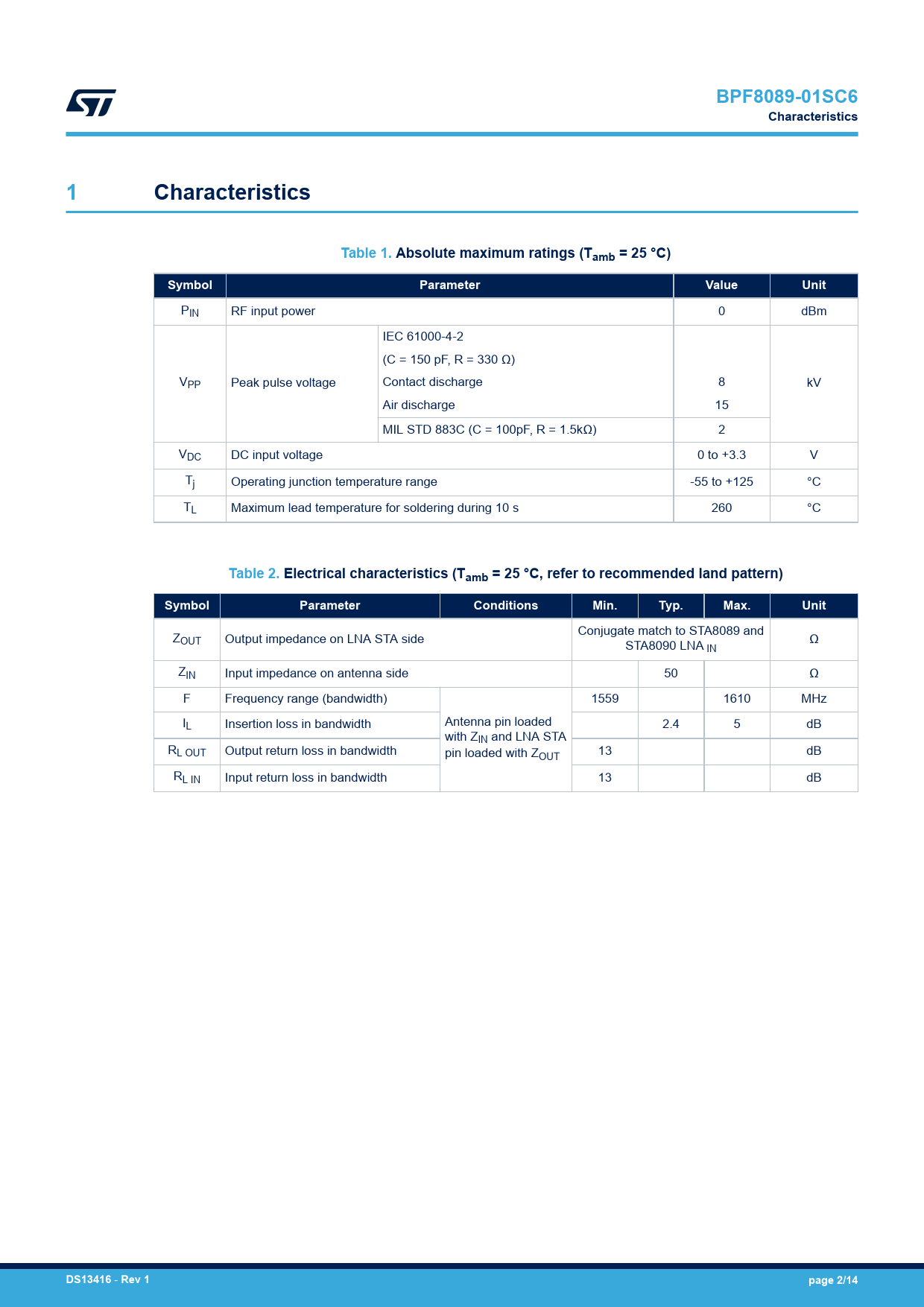 Datasheet BPF8089-01SC6 (STMicroelectronics) - 2