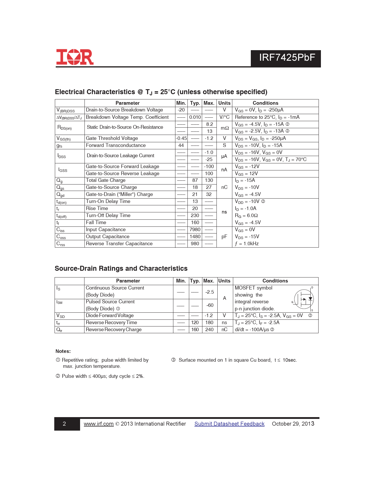 Datasheet IRF7425PbF (Infineon) - 2