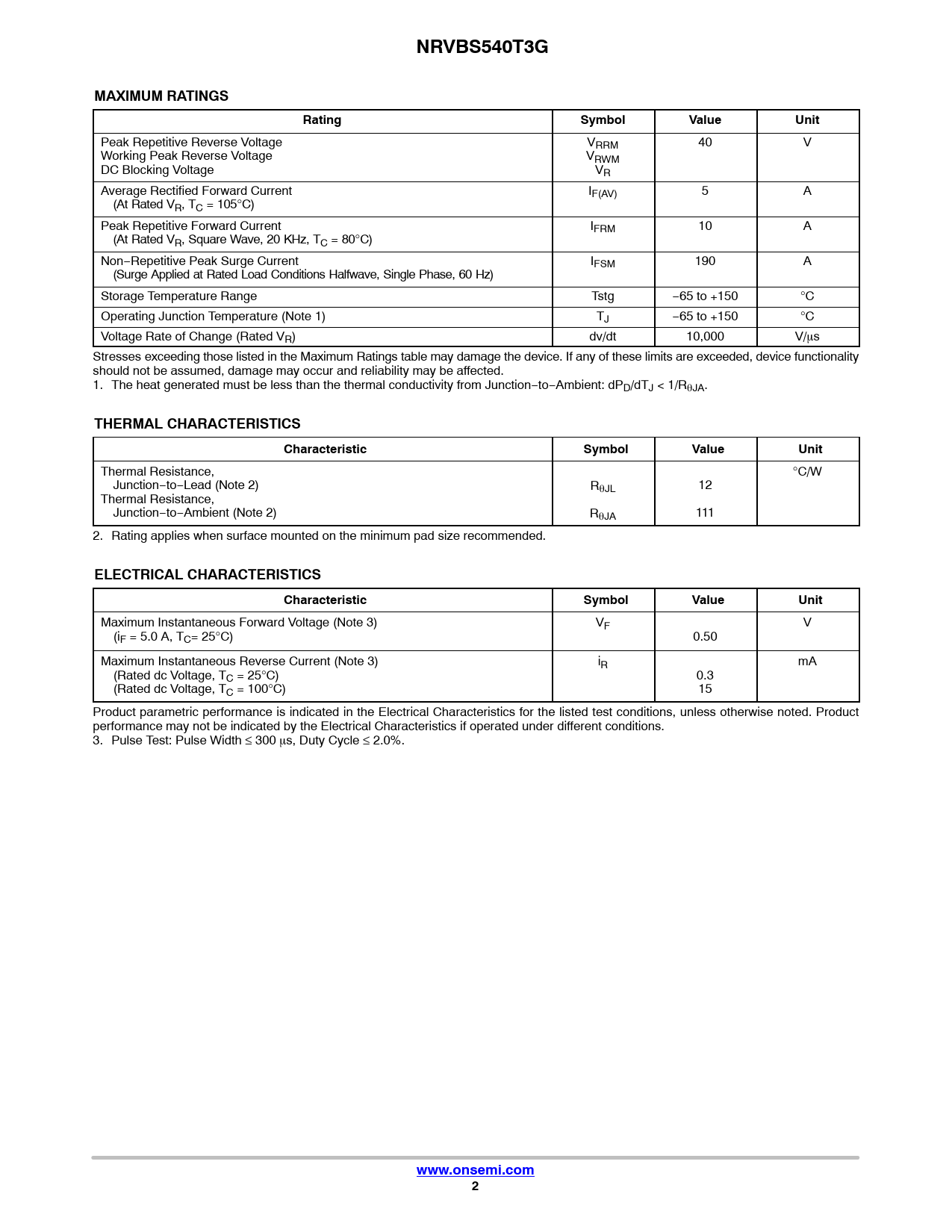 NRVBS540T3G. MAXIMUM RATINGS. Rating. Symbol. Value. Unit. THERMAL CHARACTERISTICS. Characteristic. ELECTRICAL CHARACTERISTICS