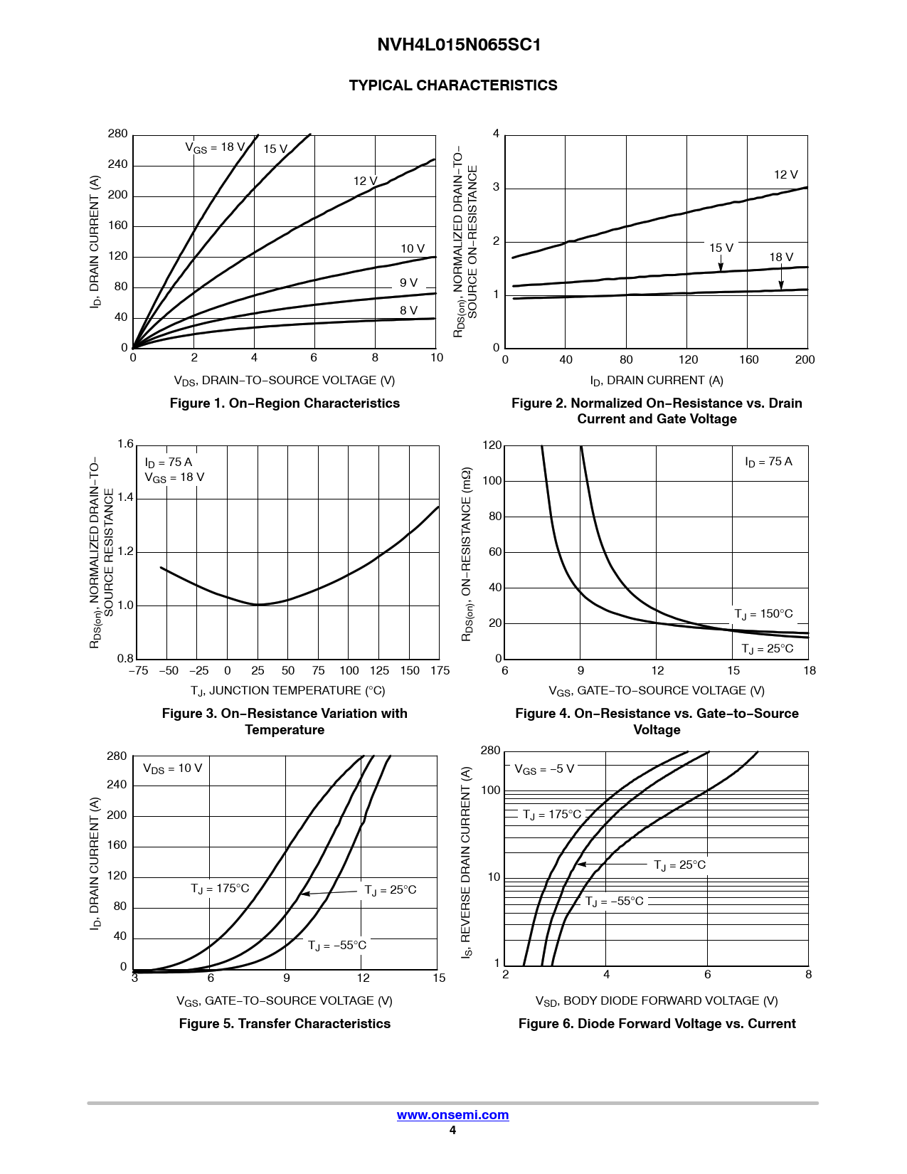 | Páginas / Página | 8 / 4 — NVH4L015N065SC1. TYPICAL CHARACTERISTICS. Figure 1. On−Region … |