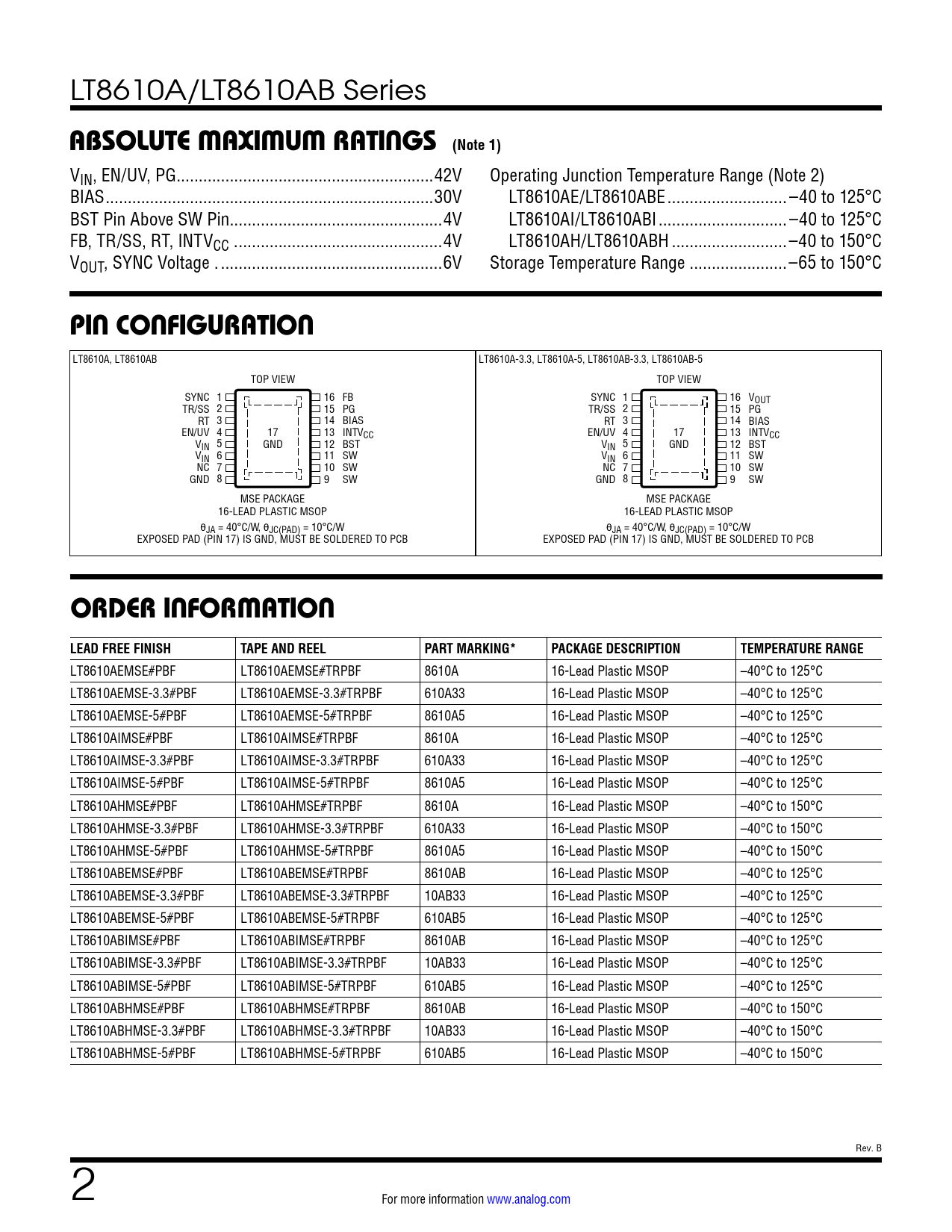 Datasheet LT8610A, LT8610AB (Analog Devices) - 2