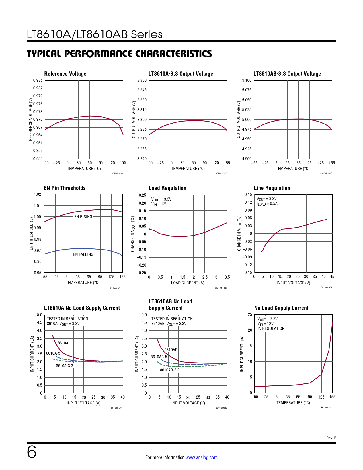 | Páginas / Página | 26 / 6 — TYPICAL PERFORMANCE CHARACTERISTICS. Reference Voltage. LT8610A-3.3 … |